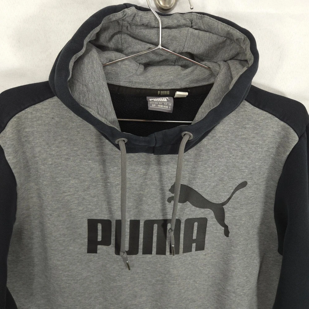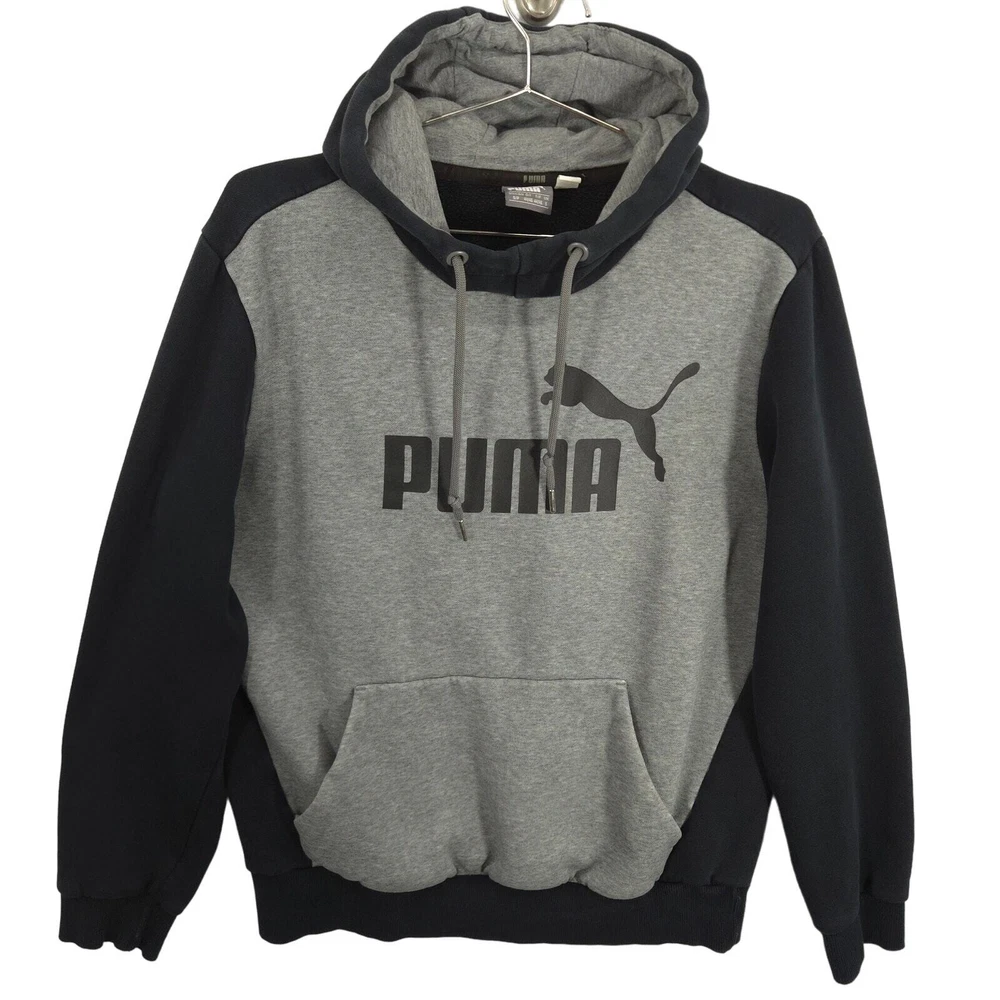 PUMA Hoodie Mens Small Gray Black Essential Big Logo Fleece Long Sleeve Pullover Great Condition: Item is in great condition with minimal signs of wear. No stains, tears, or holes. Pit to Pit: 21.5 inches Shoulder to Hem: 24.5 inches Brand: PUMA Size: S Color: Gray, Black Material: Cotton, Polyester Sold as pictured. Thanks for looking! -Measurements are approximate, please measure and check your favorite items at home to estimate fit -100% authenticity guaranteed -Items typically ship next business day