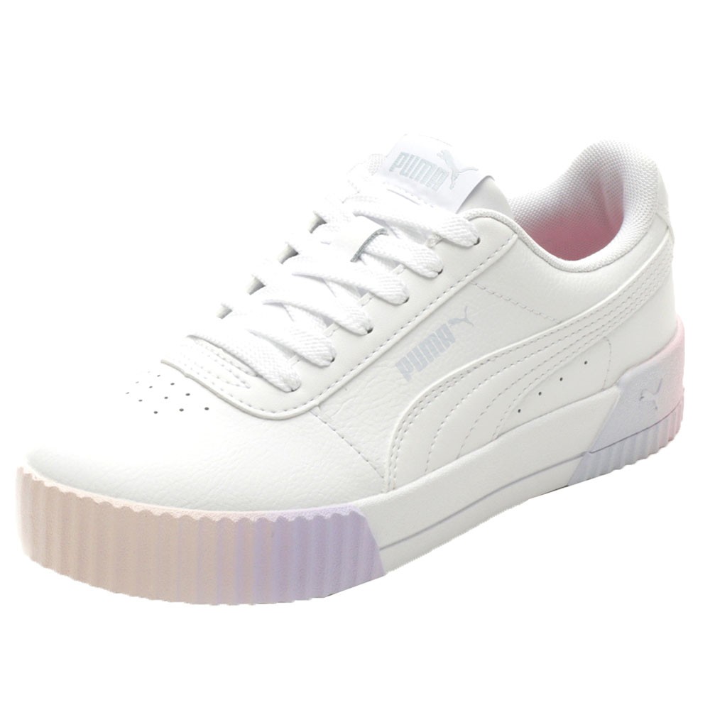 Jada Renew Lace Up Sneakers Product Details Leather upper Lace up closure SoftFoam midsole Rubber outsole Color: Puma White-HALOGEN BLUE Chill out and take it easy in the PUMA Carina Fade shoes. Featuring a smooth leather upper atop a cotton candy-colored platform sole, the Fade is inspired by the cool California vibes from the '80s. The SoftFoam+ sockliner and flexible sock collar add step-in comfort, and the toe perforations add breathability. Additional Details Manufacturer Color: Puma White-HALOGEN BLUE Color: White Occasion: Casual Gender: Girls Age: Youth Brand: Puma