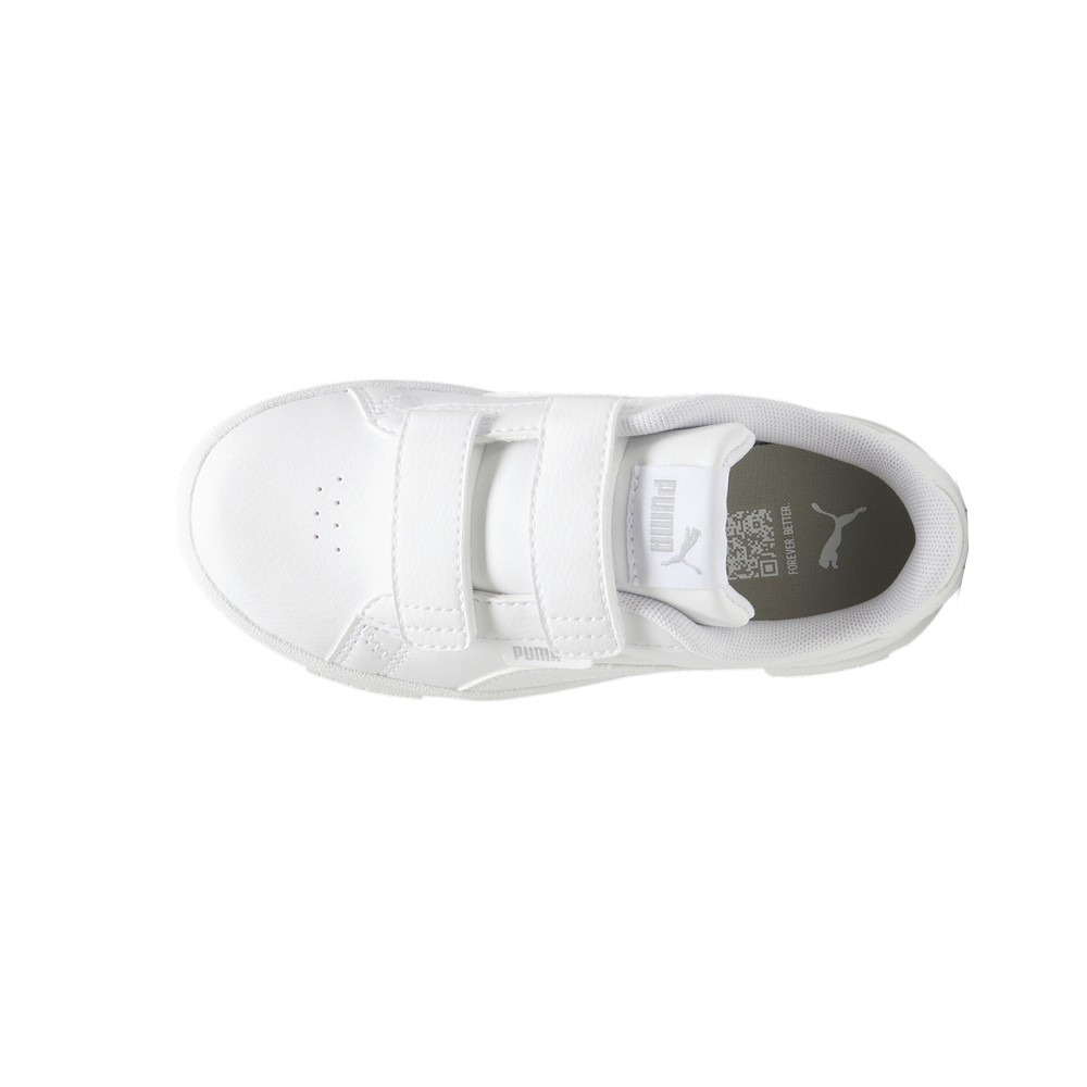 Jada V Slip On Sneakers (Toddler-Little Kid) Product Details Regular fit Polyurethane coated leather on vamp, eyestay, PUMA Formstrip and heel Synthetic leather on quarter panel Hook and loop closure for easy on-and-off Color: Puma White/Puma Silver These PUMA tennis-inspired shoes are a modern take on a classic, designed with style and comfort in mind. They feature a slightly elevated platform sole for a retro touch, plus a hook and loop closure for easy on-and-off. Perfect to keep little feet moving all day long. Additional Details Manufacturer Color: Puma White/Puma Silver Color: White Occasion: Casual Gender: Girls Age: Toddler Brand: Puma