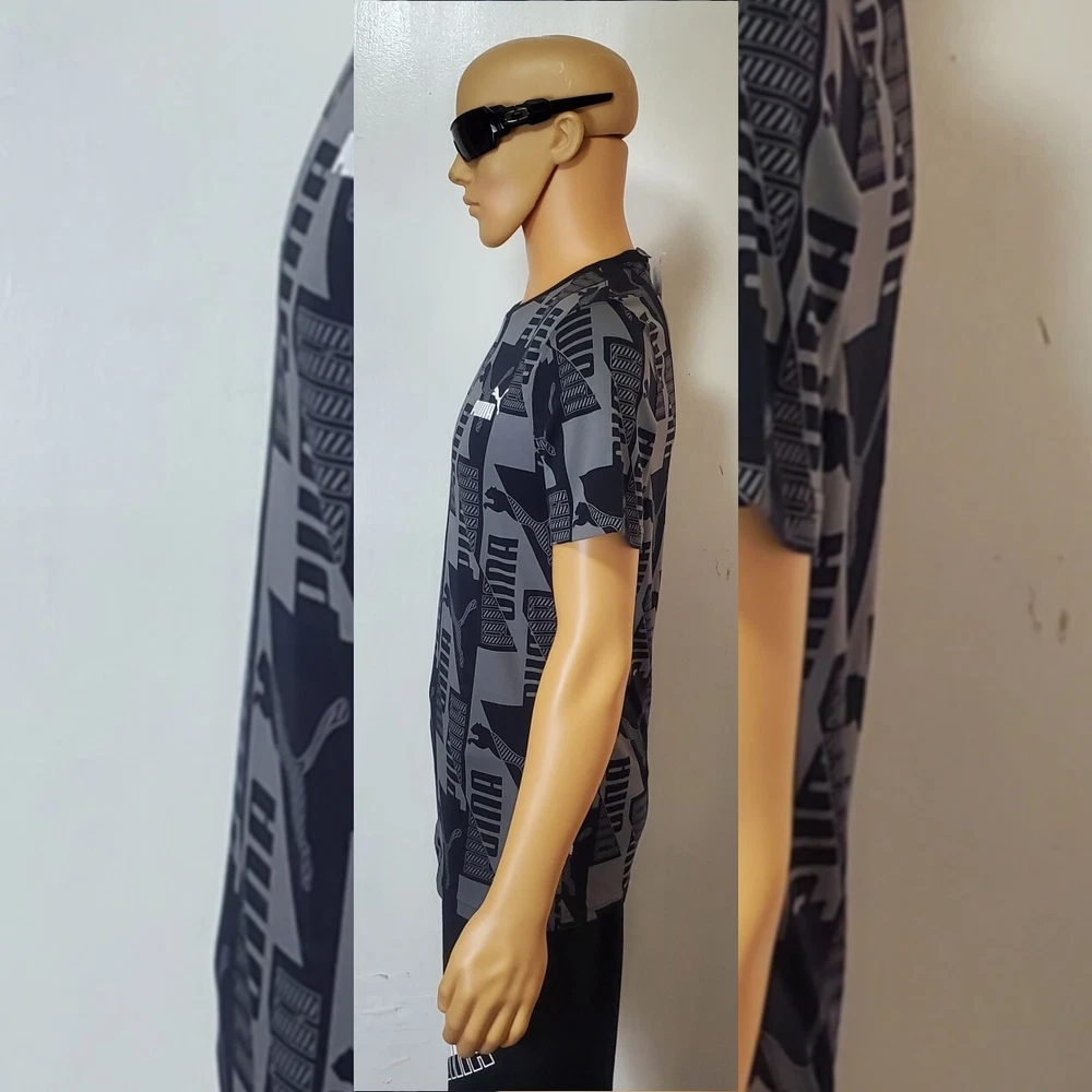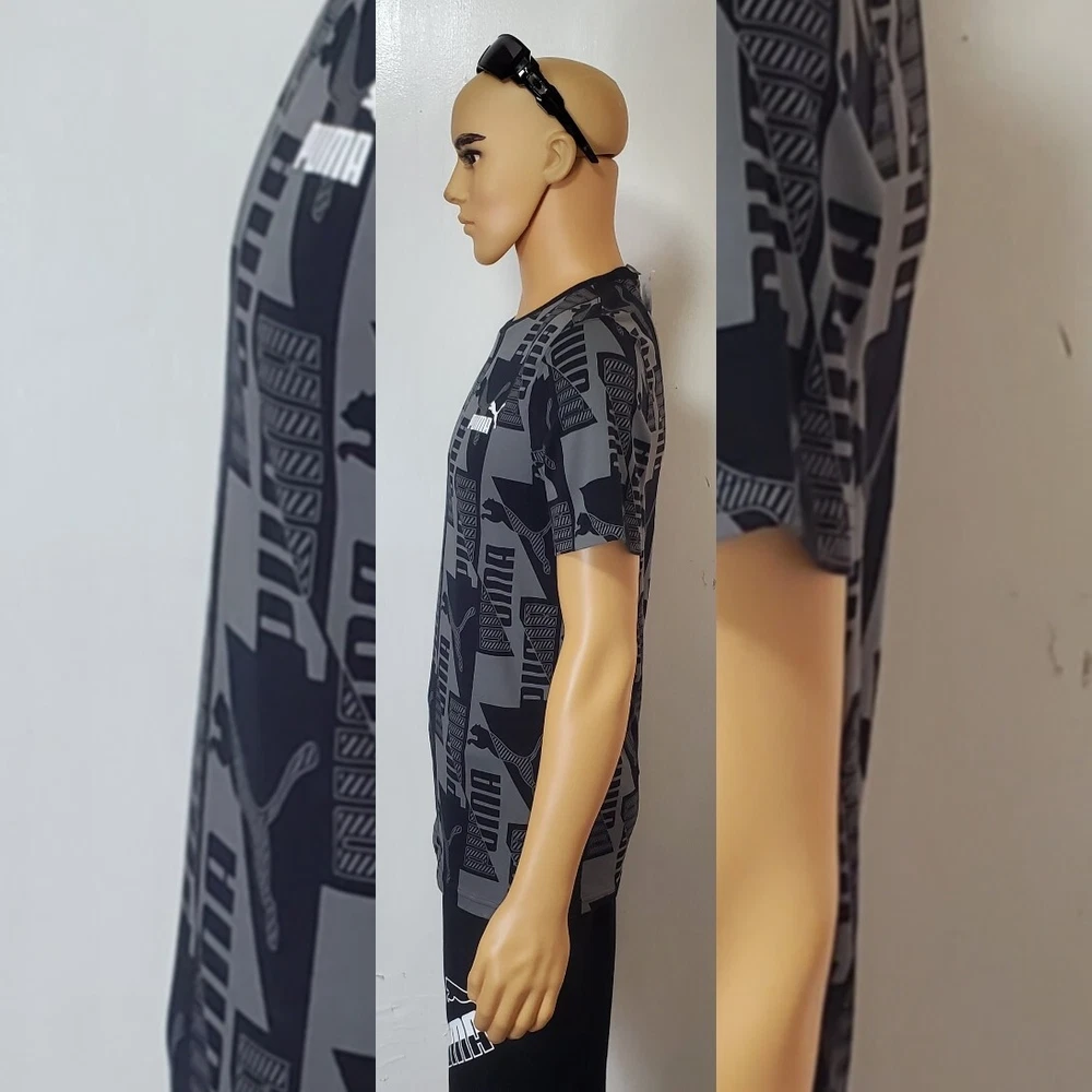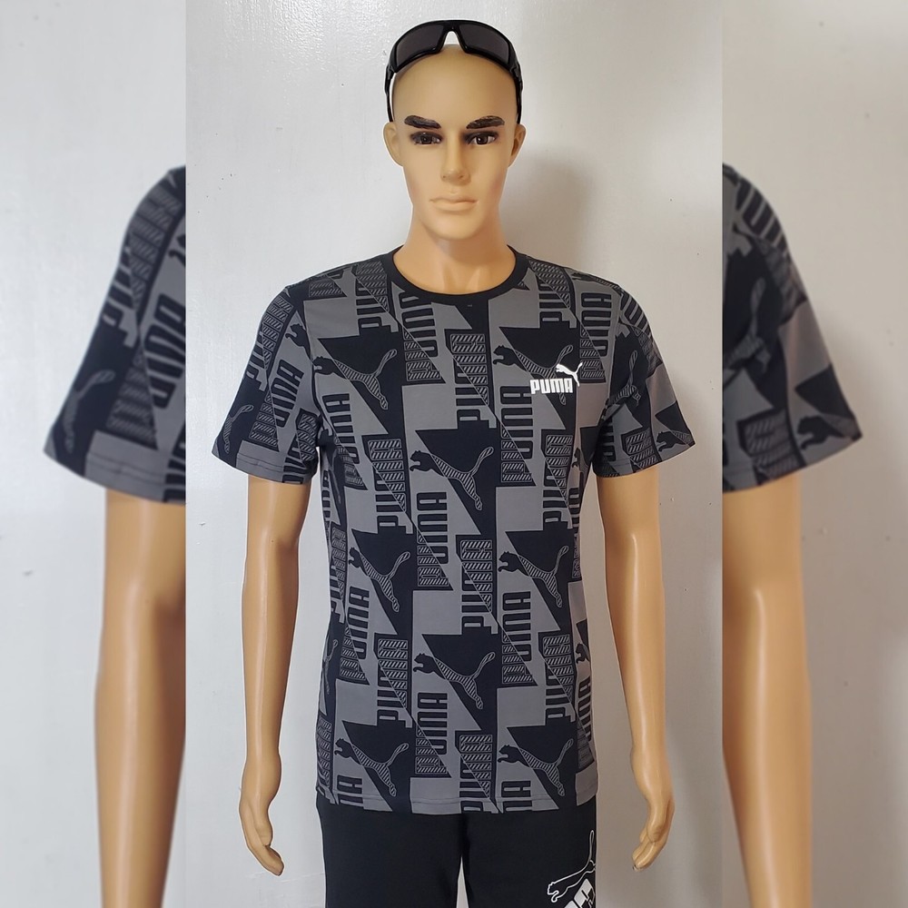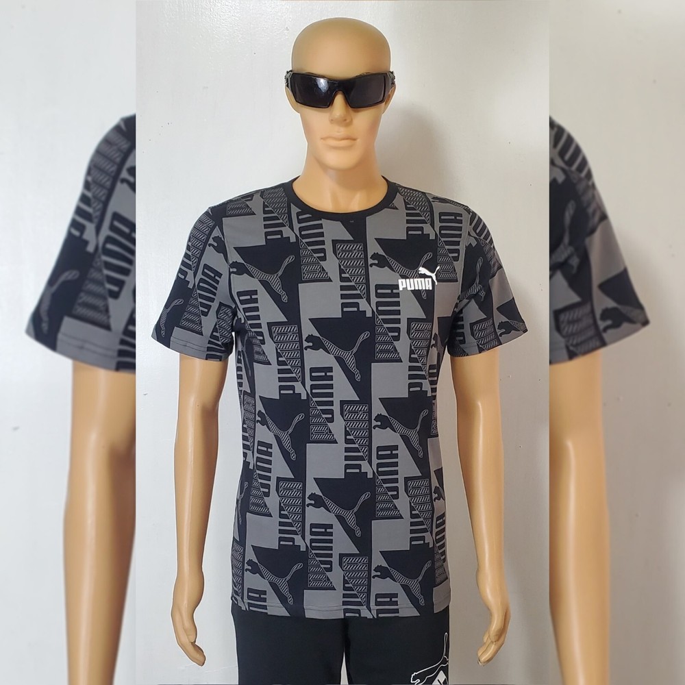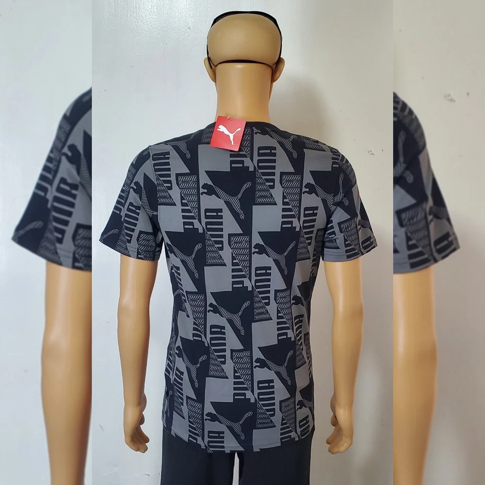 PUMA AUTHENTIC POWER AOP TEE MEN'S SIZE S BLACK.CONDITION IS NEW WITH TAGS . New Puma Collection 2022 Model Puma Power AOP •For all-in big cat fans, this tee proclaims your sportstyle loyalty loud and proud. A true stand-out from our Power collection, it showcases an on-trend tonal print that celebrates our classic logos in a mind-bending geometric constellation. A great go-to for those days that call for a little extra something. Cotton: Cotton in PUMA products comes from farms with a focus on sustainable farming such as water efficiency and soil health protection. - Regular fit - Ribbed crew neck - Graphic all-over print with PUMA Cat Logos and PUMA Wordmarks - PUMA No. 1 Logo rubber print on the left chest