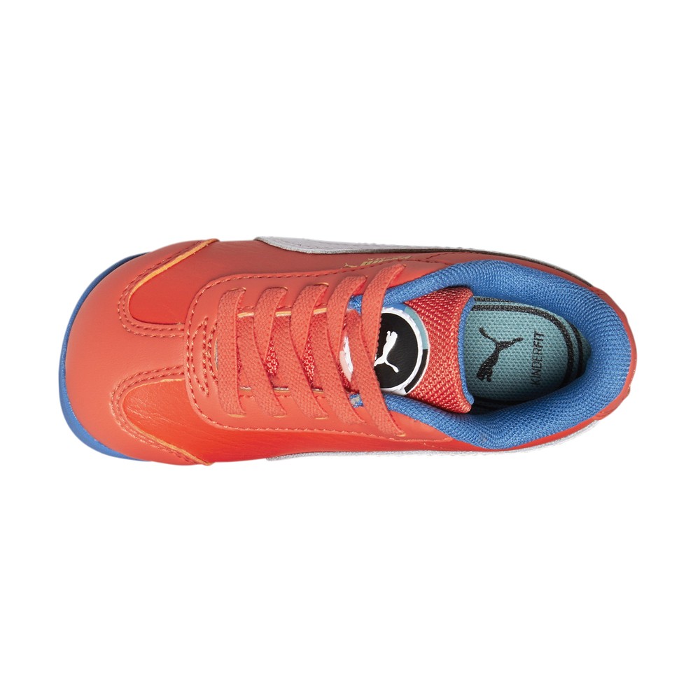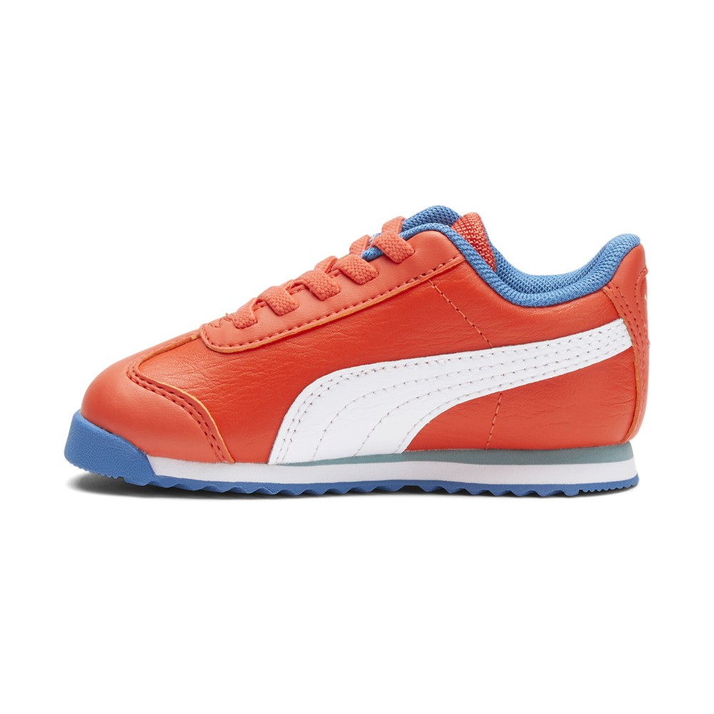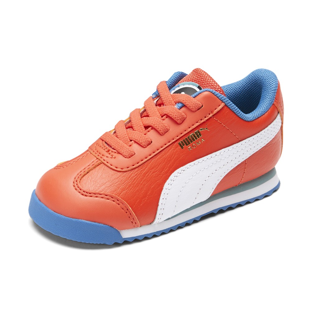 Roma Go For Lace Up Sneakers (Infant-Toddler) Product Details Leather upper Lace up Retro Design Color: Firelight/Puma White/Vallarta Blue Archive style meets modern construction to give your future ballers the PUMA Roma Go For. These lightweight training shoes are equipped with comfort enhancing features, making it easy for growing feet to walk with confidence. The thick padded tongue and orthopedic arch supports give your toddlers the ease of taking on any challenges with ease. Finished with peace and togetherness inspired designs, the PUMA Roma Go For keeps your little stars ready to rock through the day. Additional Details Manufacturer Color: Firelight/Puma White/Vallarta Blue Color: Orange Occasion: Casual Gender: Boys Age: Toddler Brand: Puma