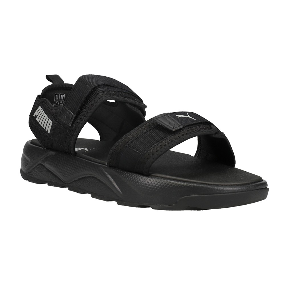 RS River Sandals Product Details Mesh cross strap design with hook and loop closure Padded heel piece with webbing pull loop Cushioned midsole for comfort Rubber outsole for durable grip Color: Puma Black-High Rise Introducing the PUMA RS Sandal, the perfect combination of style and comfort for your feet. These cushioned sandals feature a secure velcro strap for a customizable fit, ensuring maximum comfort all day long. Whether you're running errands or hitting the beach, the RS Sandal provides the support and cushioning your feet need to keep you going. Say goodbye to uncomfortable footwear and step into the world of PUMA comfort and style with the RS Sandal. Additional Details Manufacturer Color: Puma Black-High Rise Color: Black Occasion: Casual Gender: Mens Age: Adult Brand: