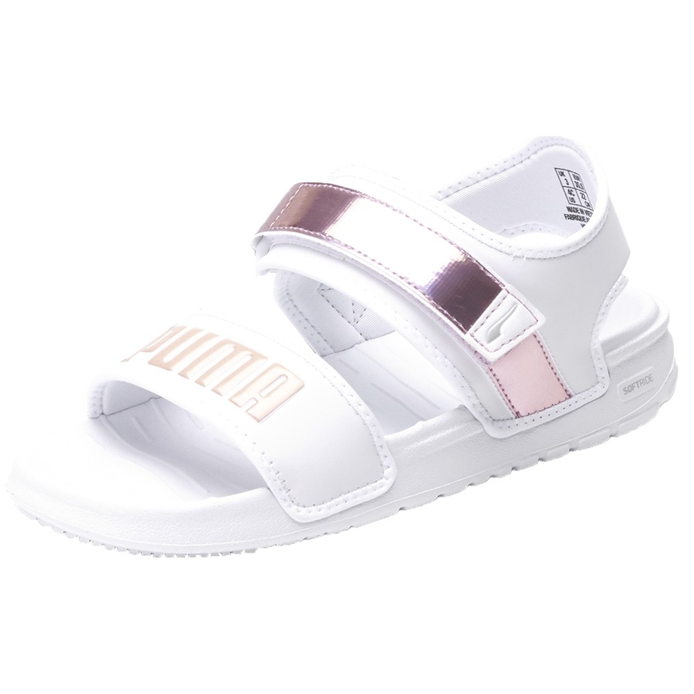 Softride Backstrap Sandals (Big Kid) Product Details Rubber upper SoftRide midsole compound Rubber outsole for traction Elastic heel strap for an easy on & off and a secure fit Color: Puma White/Winsome Orchid Brace yourself. One of the most comfortable and lightweight sandals ever is here. Yup, we said EVER. The Softride Sandal features Softride foam midsole technology. Which is fancy speak for extreme cushioning and all-day comfort. Additional Details Manufacturer Color: Puma White/Winsome Orchid Color: White Occasion: Casual Gender: Girls Age: Youth Brand: Puma