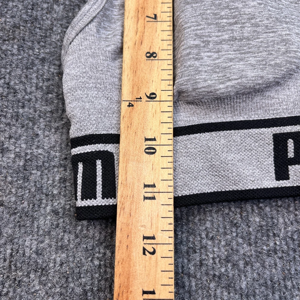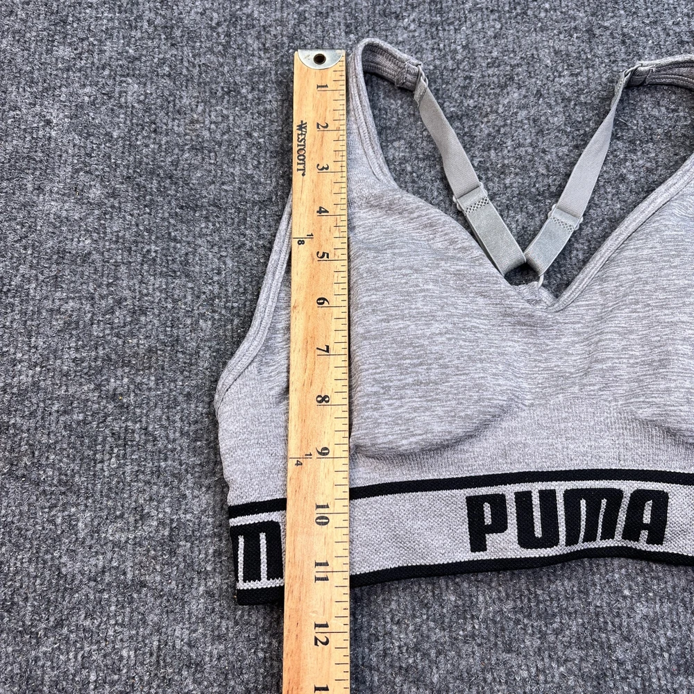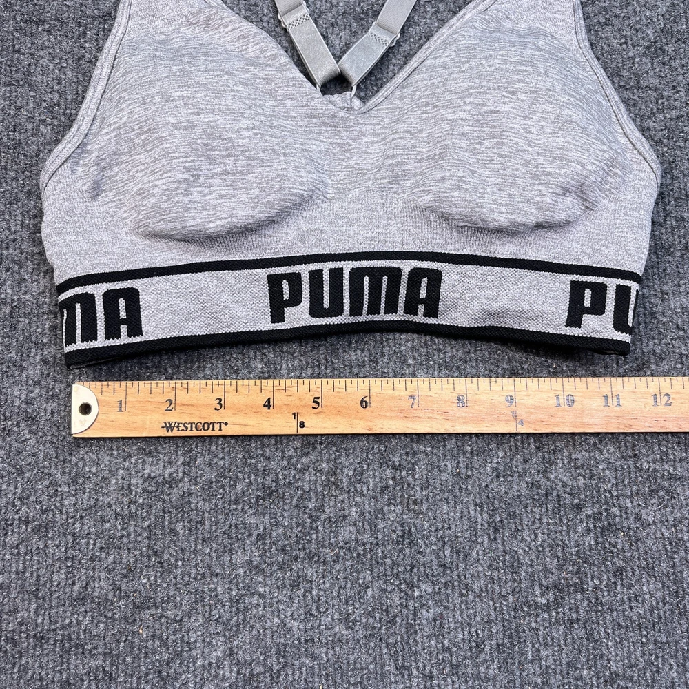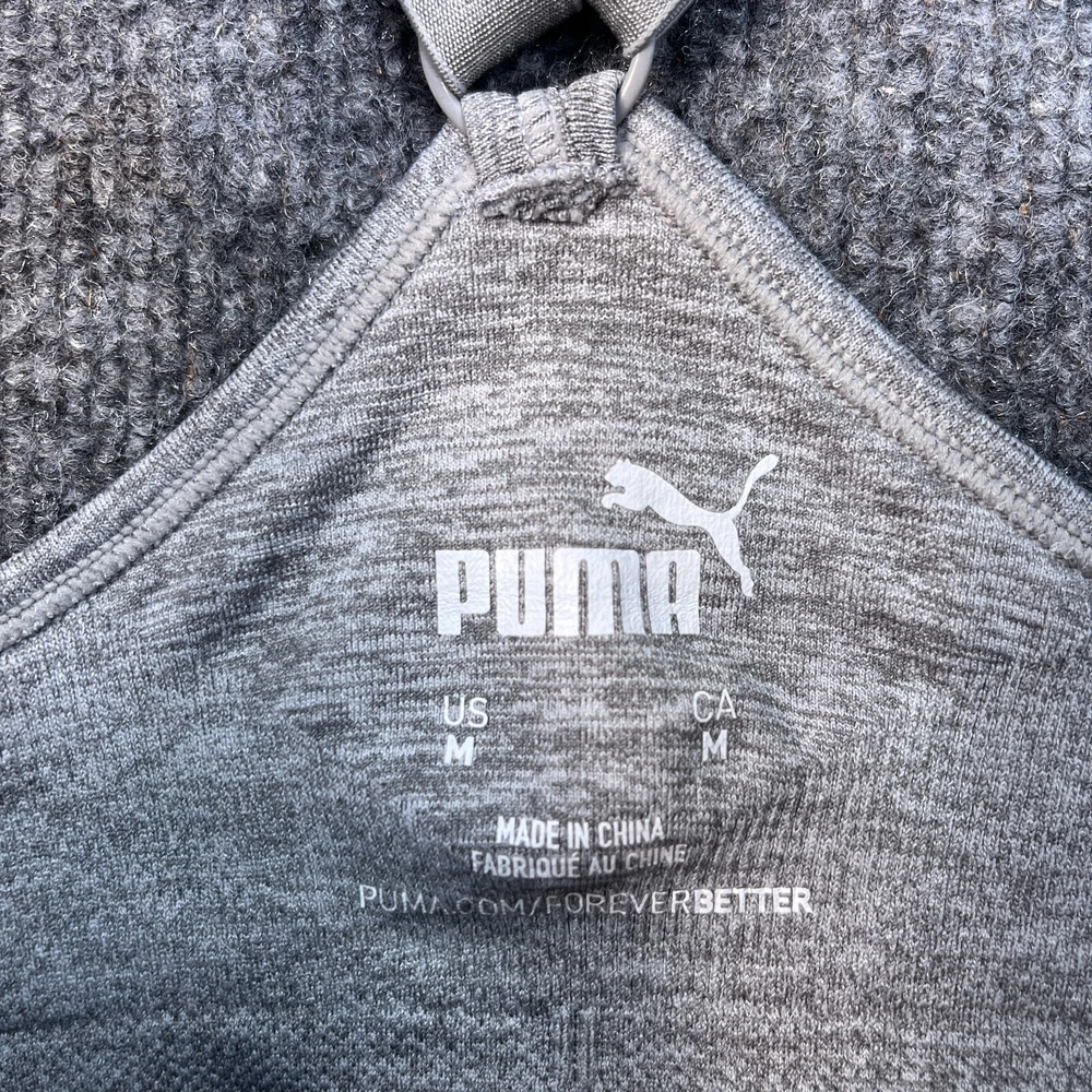 Occasion: Activewear Style: Sports Bra Performance/Activity: Any Performance/Activity, Athleisure, Yoga Garment Care: Machine Washable Closure: Pullover Pattern: Solid Fabric Type: Blended Fabric Brand: PUMA Personalize: No Accents: Logo Cup Coverage: Full Product Line: Victoria Sport Type: Bra Features: Comfort Straps Support Level: Low Size Type: Regular Band Size: M Color: Gray Underwire Type: Wireless Strap Type: Bra Strap Cup Size: One Size Country/Region of Manufacture: Unknown Department: Women Size: M Theme: Sports