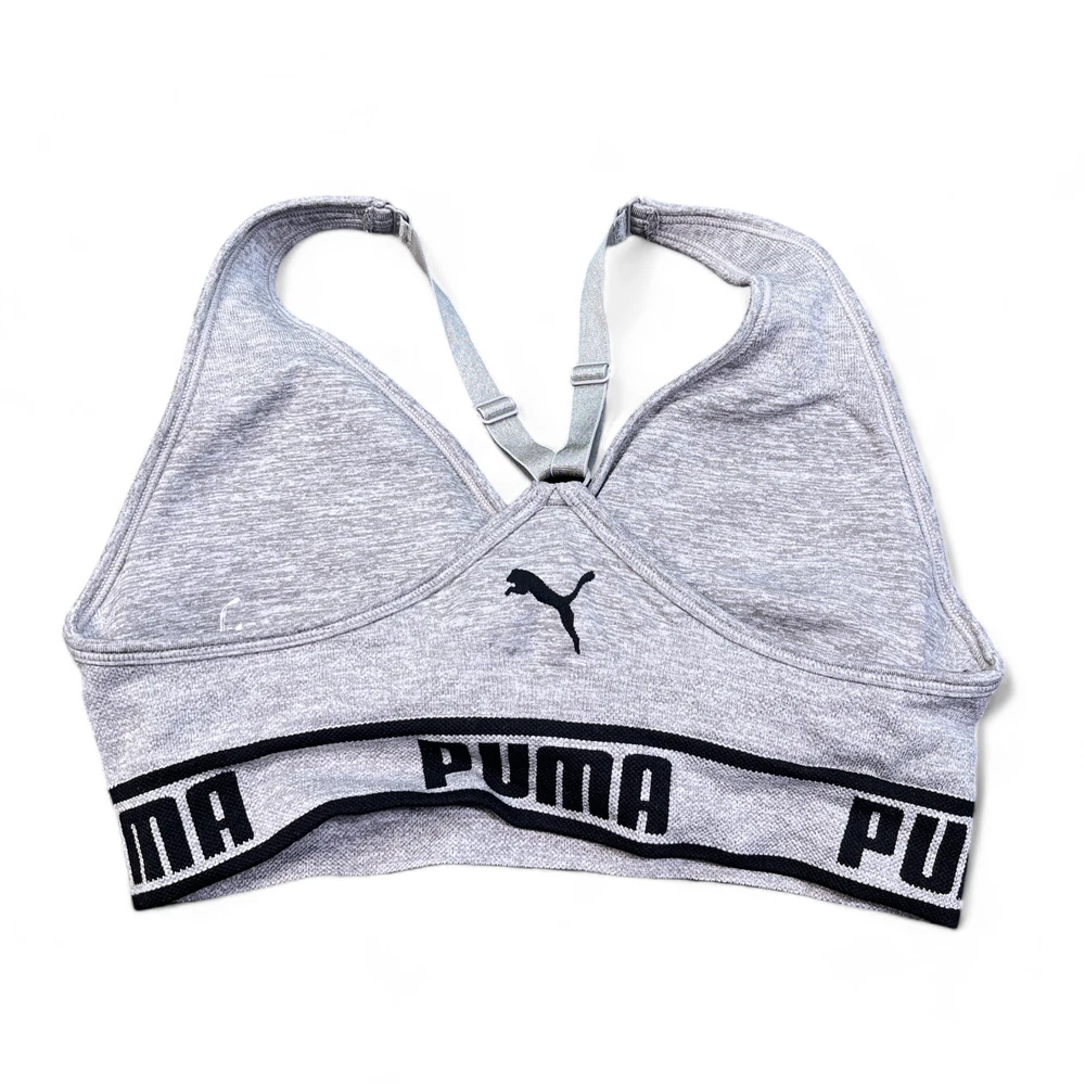 PUMA Sports Bra Womens Size Medium Light Gray Big Band Logo Athletic Active