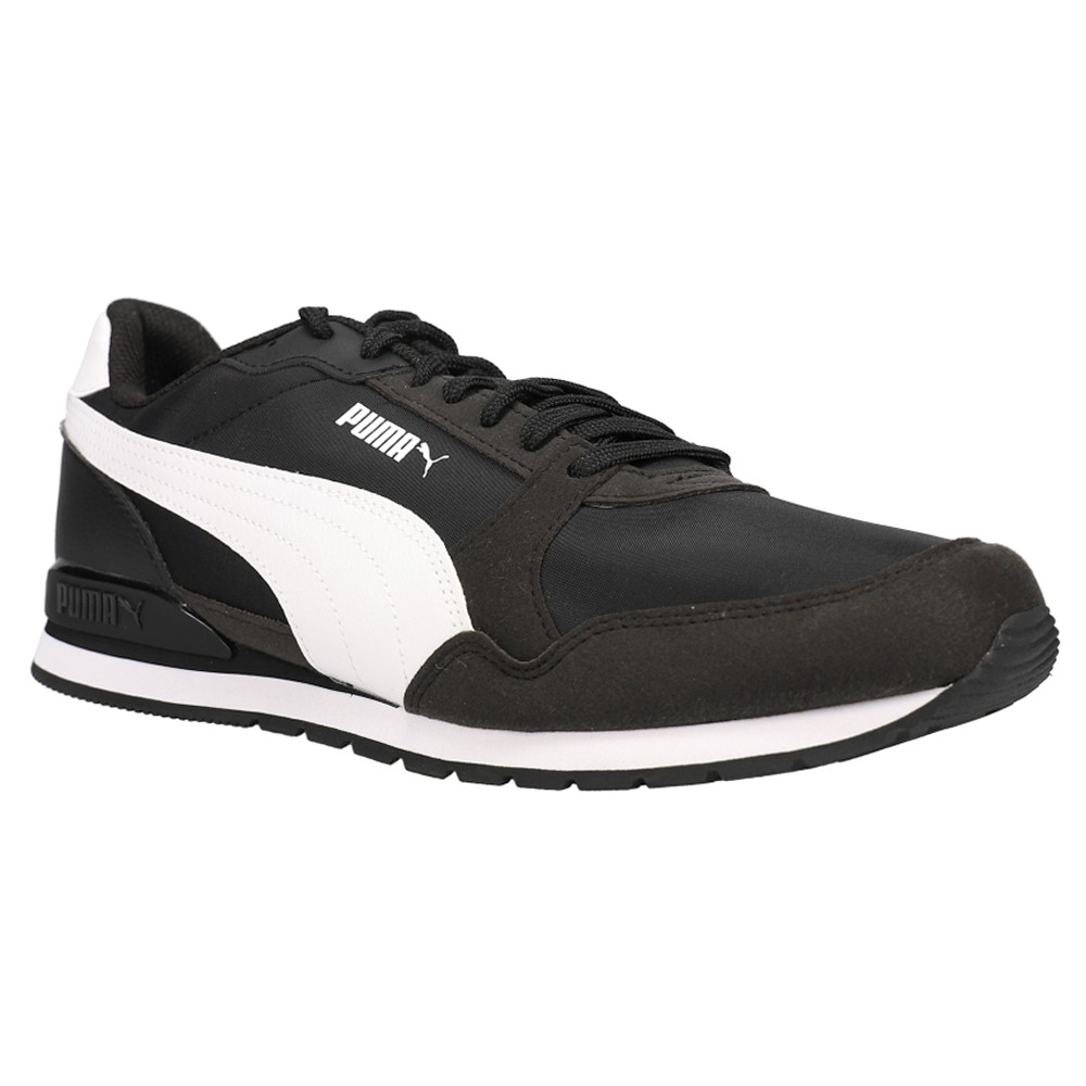 ST Runner v3 Nylon Lace Up Sneakers Product Details Upper made of mixed materials Lace closure Ethylene vinyl acetate midsole Rubber outsole Puma Formstrip at medial and lateral sides Celebrating the archive with a familiar look updated with small tweaks to the upper and careful adjustments to the heel clip, the ST Runner v3 Trainers will make any outfit pop. The timeless and legendary design will never go out of style, while the Soft Foam Plus sockliner ensures all day comfort. Additional Details Color: Black Occasion: Casual Gender: Mens Age: Adult Brand: Puma