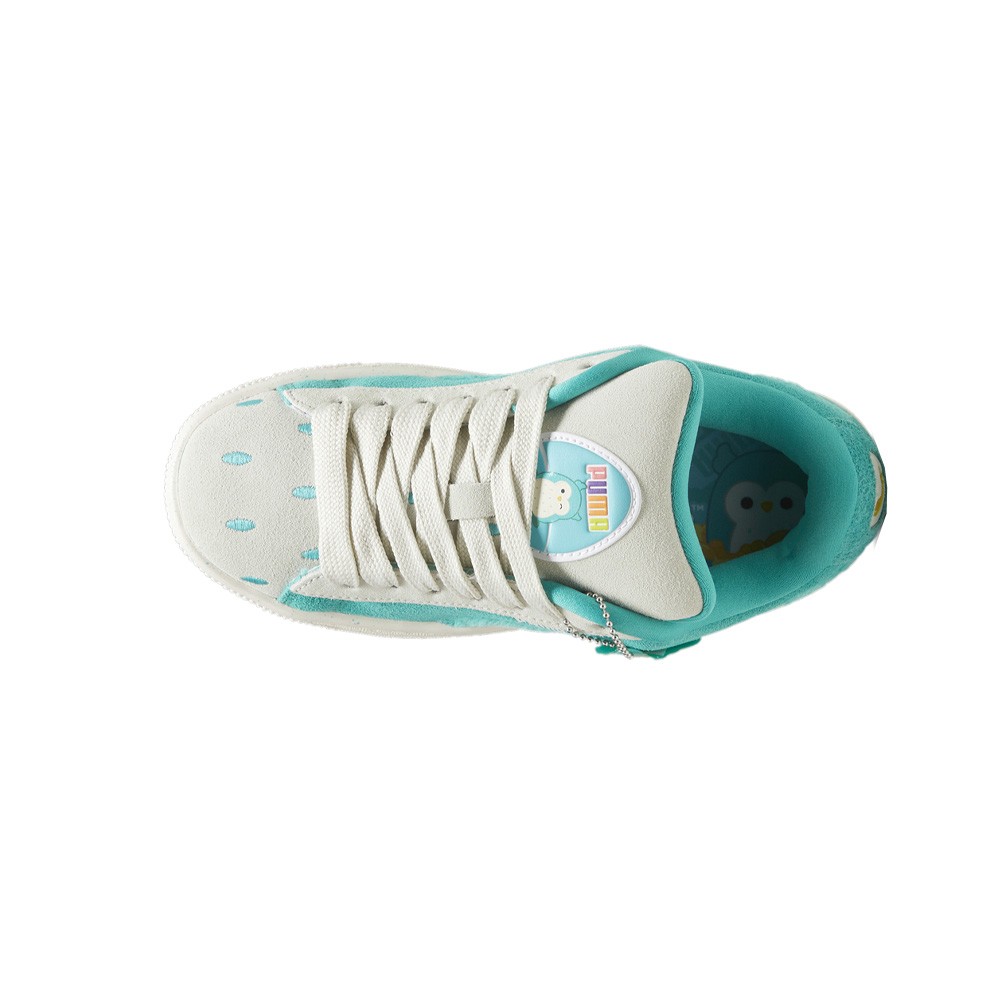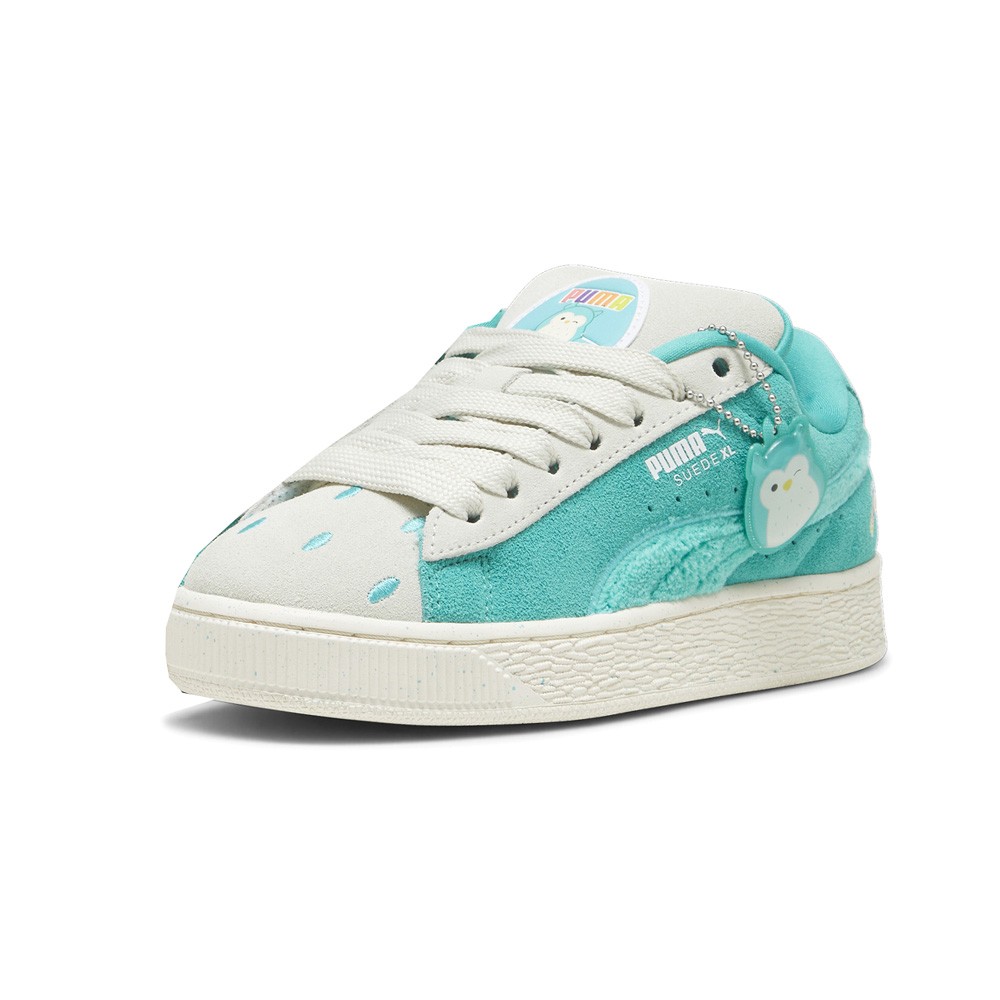 Suede XL Winston x Squish Lace Up Sneakers (Big Kid) Product Details Suede upper Plush Formstrip Puma x Squish co-branded details Thermoplastic polyurethane hangtag Rubber outsole Color: Warm White/Alpine Snow/Elektro Pool The Suede XL is bursting with personality. In the Puma x Squish collab, this high-energy sneaker is designed after the fan-favorite teal owl, Winston. The upper features Winston’s signature colors along with subtle nods to his love for mac and cheese at the heel. These shoes feature a lace charm and the iconic Squish hangtag artwork on the tongue complete with custom collector number. Additional Details Manufacturer Color: Warm White/Alpine Snow/Elektro Pool Color: Green, Grey Occasion: Casual Gender: Boys Age: Youth Brand: Puma