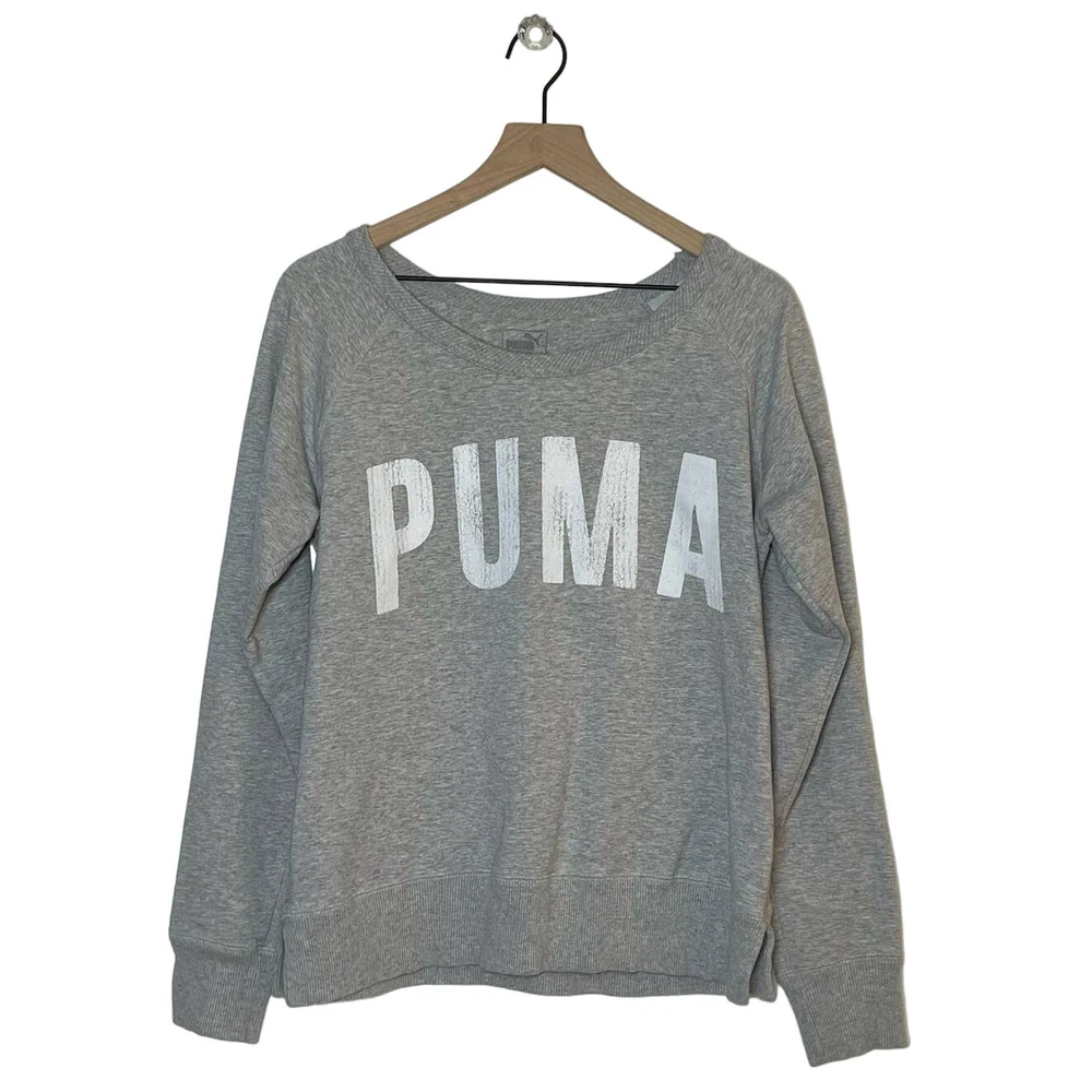 PUMA Sweatshirt Womens Size Large Gray White Spellout Logo Knit Stretch Pullover Brand: PUMA Size: Large Style: Sweatshirt Color: Gray Condition: Good Preloved Condition This vintage sweatshirt features an cotton blend material, long sleeves and crewneck. This sweatshirt is the perfect piece to wear alone or layer during a cold weather day. Approximate flat lay measurements Pit to pit 20in Length 24.5in