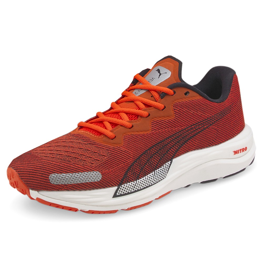Velocity Nitro 2 Running Shoes Product Details Engineered mesh upper Lace up closure Nitro foam midsole Puma grip rubber outsole Color: Cherry Tomato/Puma Black An all-in-one neutral running shoe for any distance, the Velocity Nitro 2 is a lightweight and sleek update to the Run PUMA roster. From treadmill to track, trust that these shoes will take you to the finish line! Additional Details Manufacturer Color: Cherry Tomato/Puma Black Color: Red Occasion: Casual Gender: Mens Age: Adult Brand: Puma