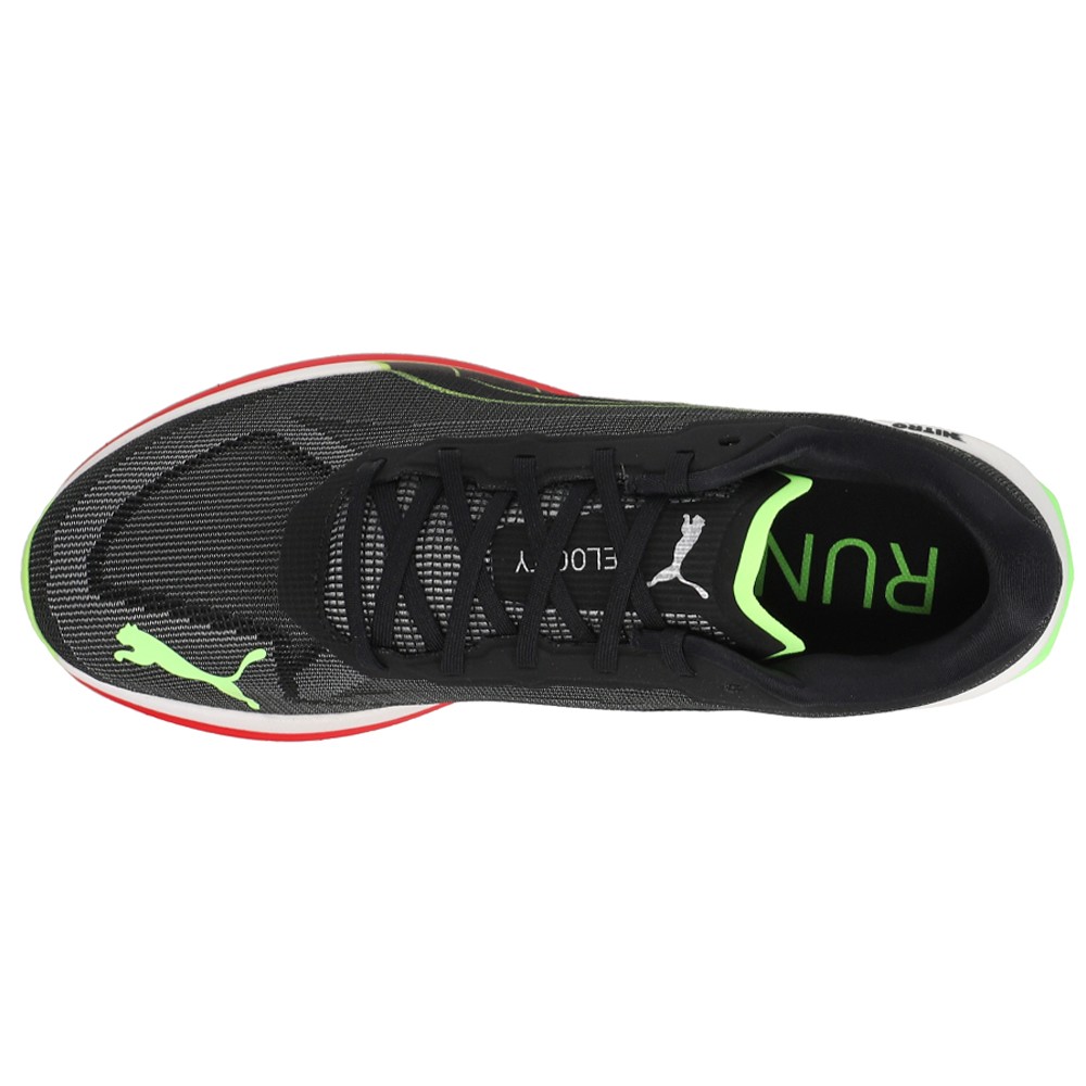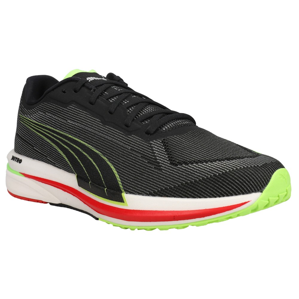 Velocity Nitro Lace Up Running Sneakers Product Details Mesh upper Full lace closure Reflective TPU heel piece for added stability Reflective PUMA Cat Logo print at lateral toe Velocity NITRO doesn’t pick favorites. Made for any distance, this anywhere, everywhere running shoe was made with NITRO foam for superior responsiveness and ultimate cushioning. A secure fit and a breathable, engineered mesh upper offer a comfortable ride for every run. To complete the package, a PUMA GRIP rubber outsole offers supreme traction for all surfaces and conditions. Additional Details Color: Black Occasion: Casual Gender: Mens Age: Adult Brand: Puma