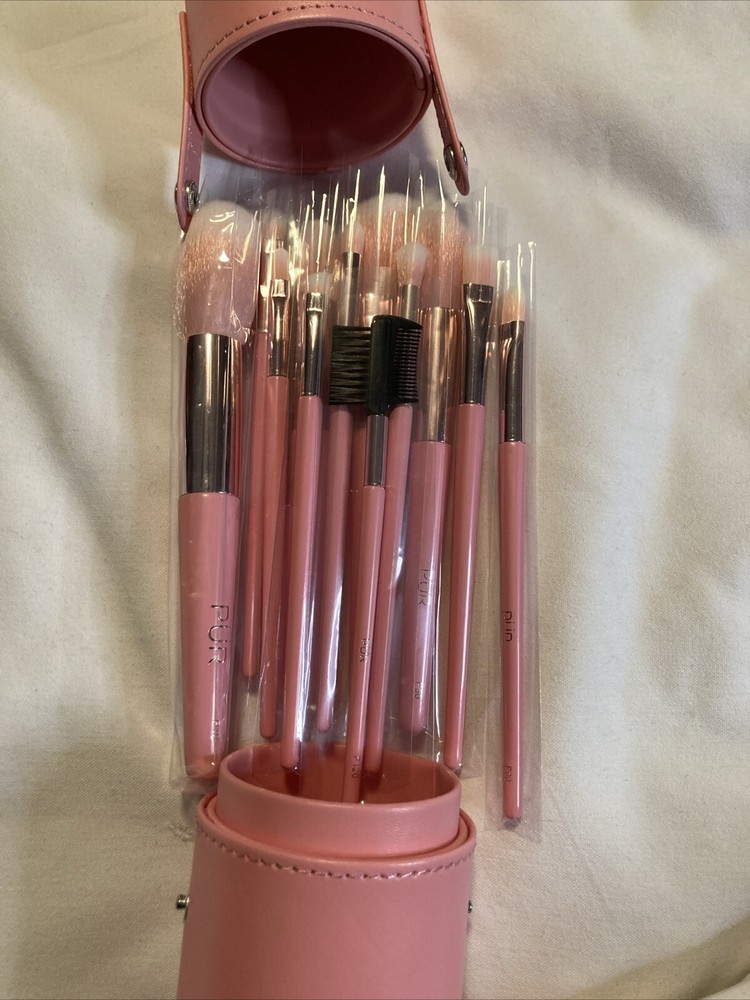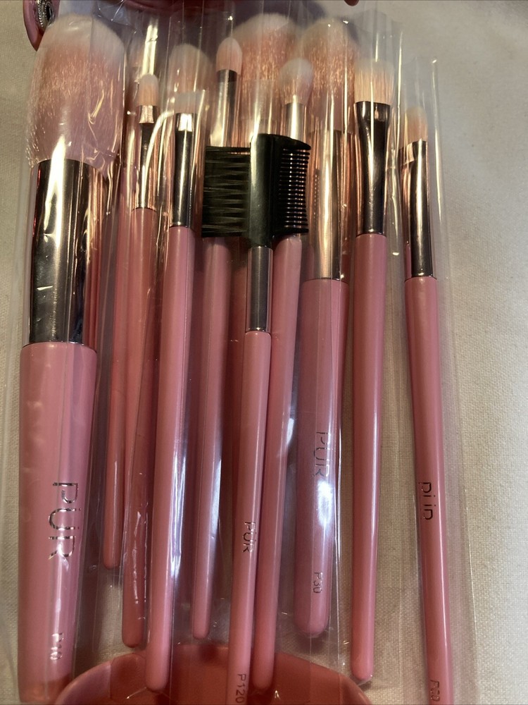 New PUR The Complexion Authority Pink Travel Brush Set 12 Brushes w/Case.