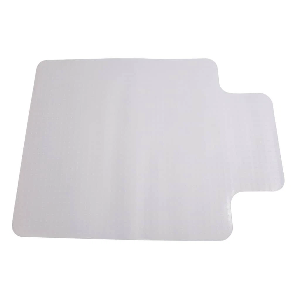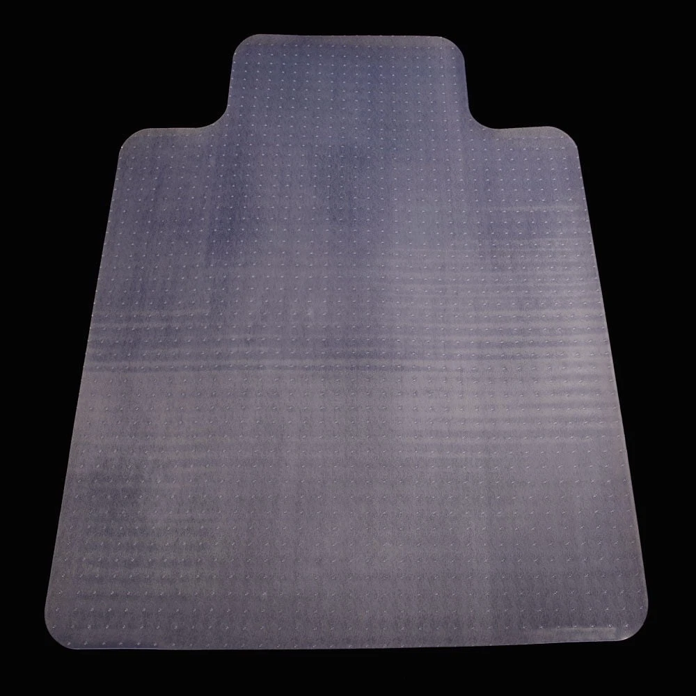 Introductions: Ideal for home or office, the Floor Chair Mat protects floors from damage caused by chair legs or rolling casters. The chair mat creates a protective barrier and it won't mark or damage the floor or tiles. like hardwood, tile, laminate, vinyl, it easy to roll a chair on and off, whether rolling from a desk to a file cabinet or transitioning from one workstation to another.Features: Our office floor chair mat rectangular shape with extended lip for under-desk coverage, Designed for use on all hard floor surfaces such as tile, laminate, hardwood etc. slightly coated underside prevents mat from slipping. Our floor chair mat made from long life PVC, 2mm thick, The chair mat has the characteristics of high strength of anti-impact, good toughness, moisture-proof, Free Shipping Over $49.99* Details PVC Chair Floor Mat Studded Back with Lip Product Description: Introductions: Ideal for home or office, the Floor Chair Mat protects floors from damage caused by chair legs or rolling casters. The chair mat creates a protective barrier and it won't mark or damage the floor or tiles. like hardwood, tile, laminate, vinyl, it easy to roll a chair on and off, whether rolling from a desk to a file cabinet or transitioning from one workstation to another. Features: Our office floor chair mat rectangular shape with extended lip for under-desk coverage, Designed for use on all hard floor surfaces such as tile, laminate, hardwood etc. slightly coated underside prevents mat from slipping. Our floor chair mat made from long life PVC , 2mm thick , The chair mat has the characteristics of high strength of anti-impact, good toughness, moisture-proof, flame retardancy and insulation, to prevent cracking or shattering. The textured wear resistant pvc chair mat allows your office chair to move easily without skidding This home office floor mat promotes ergonomic posture by allowing you to roll between tasks. Firm surface mat, chair rolls easily around. Perfectly textured easy glide top keeps rolling stable yet effective. Leg fatigue a thing of the past once you lay this mat under your chair. Roll around and reach wherever you need without any stress. Desk chair mats can be used in your home office or at work to create a more stable, comfortable, safe working environment Specifications: MaterialPVC Dimensions(47.24 x 35.43 x 0.09)" / (120 x 90 x 0.22)cm (L x W x H) Weight5.73 lbs / 2.6 kg ColorTransparent Note This mat is only suitable for tiles, concrete floors and carpets. It cannot be used directly on wooden floors, otherwise the floor will be scratched by nails on the mat. Package Includes: 1 x Chair Pads with Nail