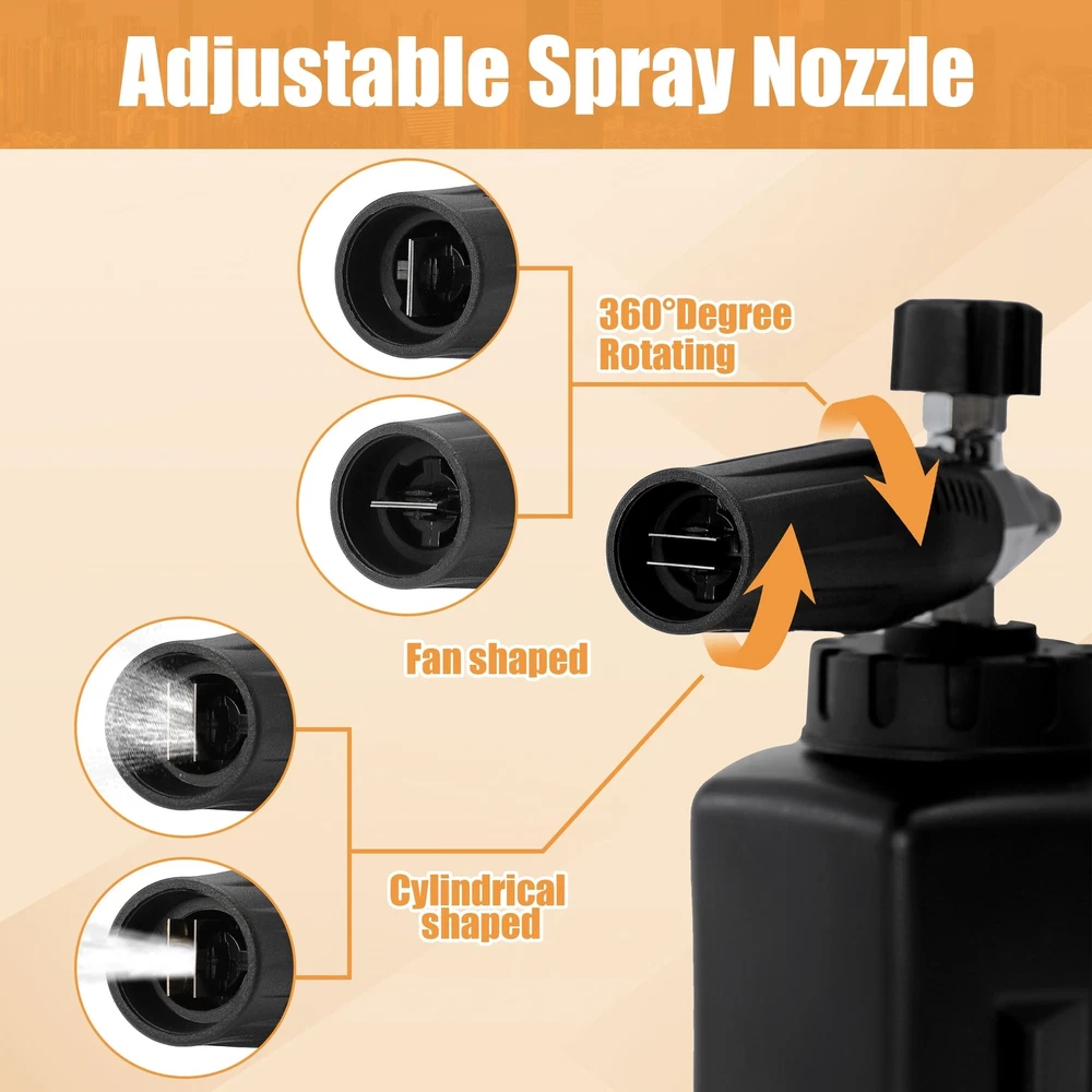 This pressure washer gun is a total game changer! The foam cannon produces the thickest, creamiest suds I've ever seen - my car looked like it got a professional detailing. Super easy to switch between nozzles and the swivel feature makes cleaning underneath vehicles a breeze. Definitely worth every penny for that showroom shine!