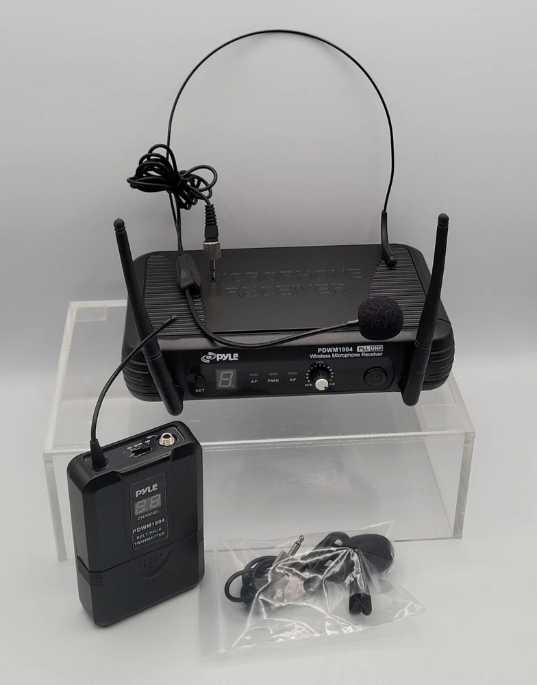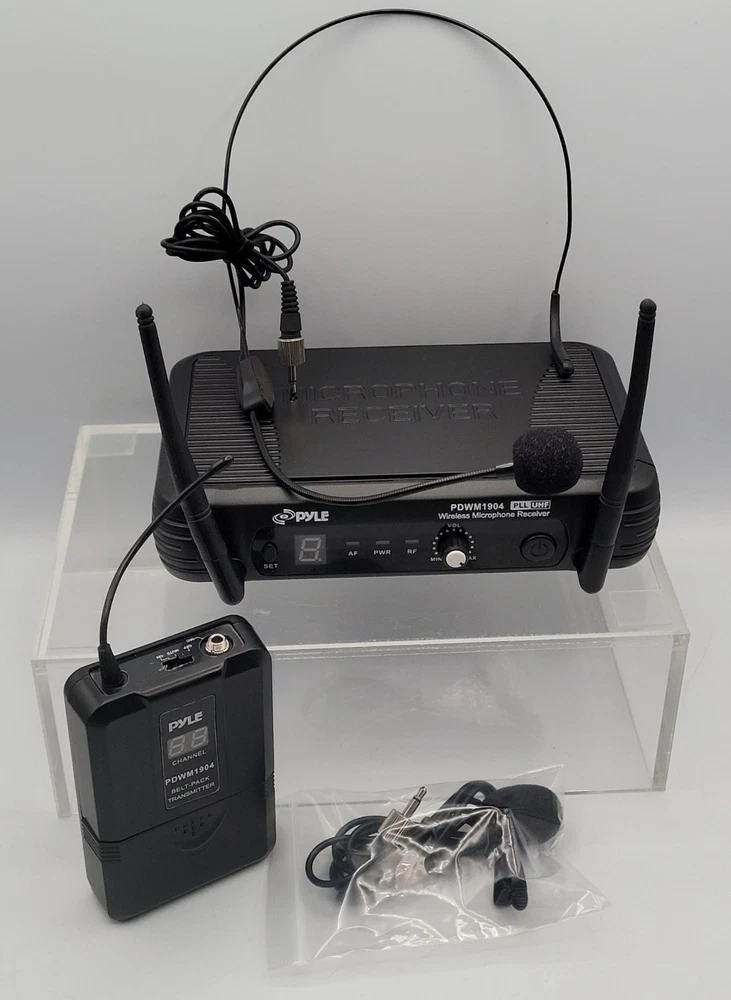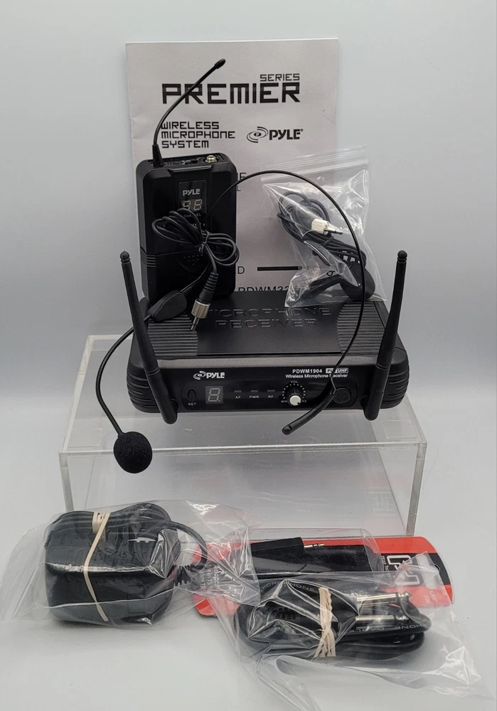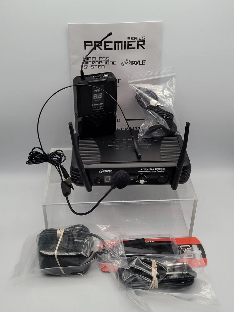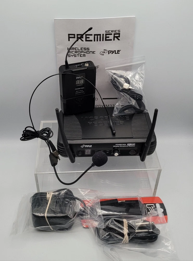 PYLE PDWM1904 Wireless Microphone System - CIB + EXTRAS - SHIPS FREE IN USA ✅️ ALL ELECTRONICS COME INSPECTED AND TESTED, THEN REPACKAGED IN POLYBAG FOR ADDED PROTECTION ✅️ Item comes complete in factory retail packaging - tested and works as it should in open box condition. Batteries are included for mobile mic module. Includes ¼" audio cable with ¼>3.5mm adapter. Item ships from WI in sturdy packaging - item ships free within USA using USPS or equivalent service. International shipping is available, standard delivery rates apply. Please reach out with any questions, and thanks for looking! Lot #PDWM1904