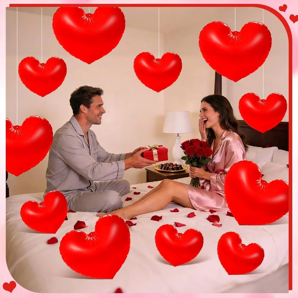 PYURTHITY 12 Pcs 16'' and 24'' Giant Valentine's Day Inflatable Heart red Description Features:Easy Setup:Simply inflate these Valentine's Day heart yard decorations using an air pump (not included) for quick decoration and party preparation.Hang these heart shaped inflatable balloons in your home, front door, porch, or windows to welcome guests with a warm and inviting ambiance.Specifications:Material: PVCColor: redSize: 16 inches, 24 inchesPackage include:12 x Valentine's Day inflatable heart decorationsNotes:Manual measurement, please allow slight errors on size.The color may exist a slight difference due to different screen displays. Features: Plenty of Love: The package includes 12 pieces Valentine's Day inflatable heart decorations and 1 piece 16.4-foot/5-meter long rope, providing ample quantity to meet all your decorating needs. Share these love-filled blow up heart with friends and loved ones on this special day to spread the love Eye Catching Sizes: Our giant Valentine's Day hanging hearts for outdoor come in 16-inch and 24-inch sizes, with 6 of each size included. The large Valentine's Day heart decorations make a bold statement when hung on trees, walls, or entrances, effortlessly adding romantic ambiance to your space Quality Material: Crafted from quality PVC, these inflatable Valentine's Day decorations are durable and feature a smooth, burr-free surface. Waterproof and abrasion-resistant, they resist punctures and fading. Easy to inflate, they offer long-lasting use to accompany you through multiple holidays Valentine's Day Design: These heart shaped decorative ornaments feature vibrant red hues and classic heart shapes for both beauty and romance. Their large size and eye-catching colors elevate Valentine's Day ambiance in any indoor or outdoor space, making your decor more captivating Versatile Use: Our large hanging hearts are ideal for Valentine's Day celebrations and also add sparkle to anniversaries, weddings, costume parties, bridal showers, baby showers, birthday parties, and more. They blend seamlessly into any love-filled celebration, creating a romantic ambiance in homes, patios, gardens, or lawns Product Details: Handling We will ship all orders within 1 business day of payment. Delivery We Do Not Ship Outside of the Continental US. Return Policy All items qualify for returns within 30 days of receipt. Buyer is responsible for return shipping on any item that is not damaged. Feedback We take our reputation seriously, we buy and sell online, so we understand the value of trust. If you are unsatisfied with your order, please contact us and we will work with you to resolve it to your satisfaction.