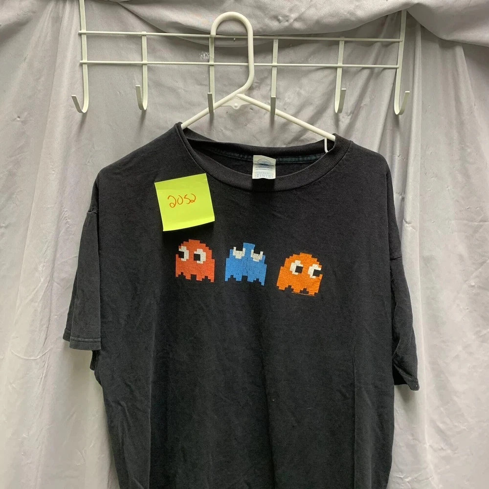 .9This Pac-Man shirt is a limited edition vintage item from the 90s featuring an embroidered logo on the front. Made of cotton and cotton blend material, it is lightweight, breathable, and stretchy, making it suitable for all seasons. The shirt has a regular fit with a crew neck and short sleeves, perfect for casual occasions. It also features a full zip and hood for added comfort. The shirt is preshrunk and double-sided, ensuring its quality. It is a perfect addition to any collection and a great way to show off your love for Pac-Man.