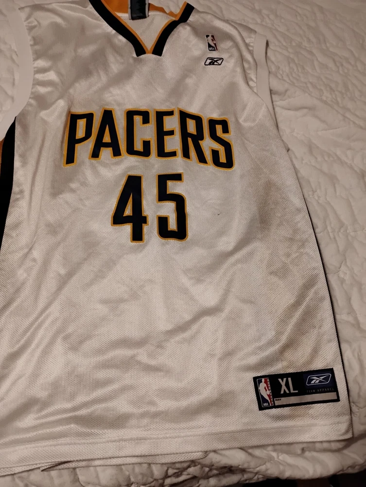 Show your love for the National Basketball Association (NBA) and the Pacers with this XL jersey. Represent your favorite team in style with this high-quality jersey, perfect for any basketball fan. Made with attention to detail and durable materials, this jersey is built to last. Whether you're cheering on the Pacers at the game or just showing off your team spirit, this jersey is the perfect addition to your collection. With its comfortable fit and stylish design, you'll be able to wear this jersey with pride. Get your hands on this must-have Pacers XL jersey today!