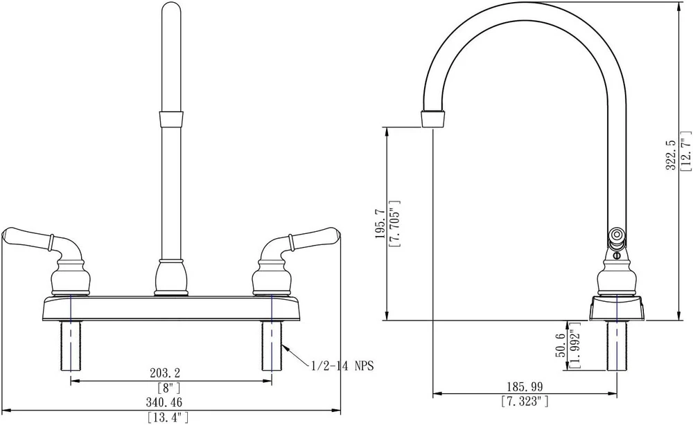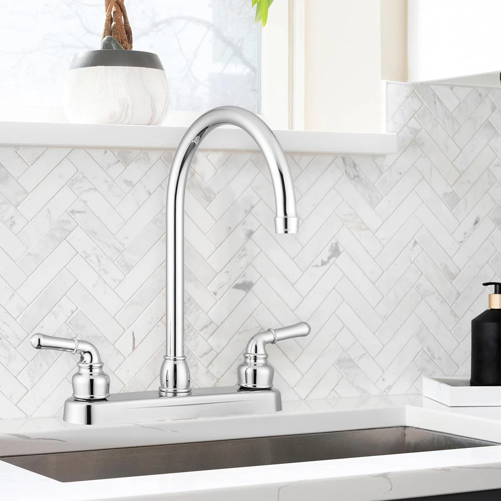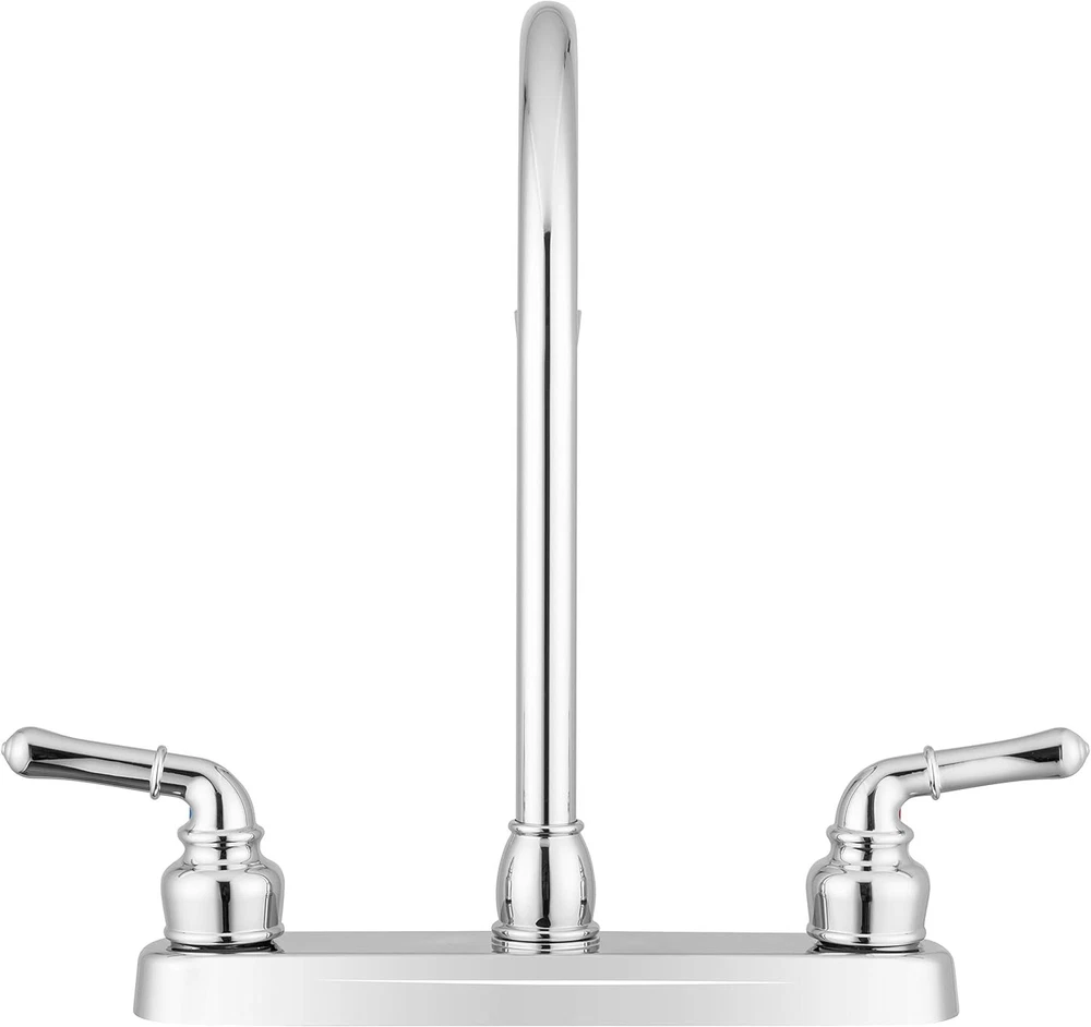 Pacific Bay Lynden Modern High Arc Kitchen Sink 8", Polished Chrome Product Details Brand: Pacific Bay Recommended Uses For Product: Kitchen Mounting Type: Deck Mount Finish Type: Chrome Material: Acrylonitrile Butadiene Styrene Color: Polished Chrome Number of Handles: 2 Included Components: All Mounting Components Hole Count: 2 Special Feature: Easy to Install Handle Type: Lever Style: High Arc Installation Type: Surface-Mounted Maximum Flow Rate: 2 Gallons Per Minute Handle Material: ABS Spout Height: 12.7 Inches Spout Reach: 7.32 Inches Item Weight: 1.28 Pounds Handle Location: single-hole-deck-mount Spout Design: Arc Manufacturer: Pacific Bay UPC: 810004870062 Product Dimensions: 7.32"D x 13.4"W x 12.7"H Part Number: PB-K11CP Item Weight: 1.28 pounds Country of Origin: Taiwan Item model number: PB-K11-XX Is Discontinued By Manufacturer: No Size: Kitchen 8" Finish: Chrome Power Source: Hand-Powered Item Package Quantity: 1 Water Consumption: 2 Gallons per Minute Measurement System: English/Standard Special Features: Easy to Install Usage: Kitchen Sink Faucet Batteries Included?: No Batteries Required?: No Brand: Pacific Bay Recommended Uses For Product: Kitchen Mounting Type: Deck Mount Finish Type: Chrome Material: Acrylonitrile Butadiene Styrene Color: Polished Chrome Number of Handles: 2 Included Components: All Mounting Components Hole Count: 2 Special Feature: Easy to Install Features | This faucet boasts an elegant and classic exterior, and comes with a decorative two-lever operation allowing you to quickly adjust temperature and water pressure. Plus, thanks to the aerated stream there won’t be any splashing, and thanks to the durable disk valve you’ll enjoy even pressure without dripping. Design | The stylish arc spout styling of this faucet is the perfect solution for updating your existing kitchen sink hardware, while the premium grade lightweight synthetic waterways and metal plated plastic construction work within your budget. Plus, the sturdy construction keeps unit firmly in place on the sink top so you don’t have to worry about damage or replacement. The design of this model blends with virtually all décor styles; so, matching-up with your current sink is easy. Quality | This dual-handle faucet comes with a durable easy-to-turn design, providing smooth turning action while preventing unwanted dripping. Constructed using metallic plating over ABS plastic but with a durable brass spout, our economical Lynden collection was made with our budget conscious customers in mind. As with all Pacific Bay products, this model is lead-free certified. Installation | No plumber is needed for this quick and easy two-hole installation so feel free to do it yourself. The lightweight design requires only a wrench and a screwdriver during assembly, and once installed, you can start using it immediately. Specifications | Works on any standard 2 or 3-hole sink opening. 8" on center, 12.7” high. Flow rate is a powerful 2.0 GPM for those that are looking for powerful stream. Aerator is removable, and spout has male thread. This faucet is UPC and CUPC Certified. Pacific Bay is an American company with USA-based Customer Support, so you can trust that any issues will be resolved timely and accurately.