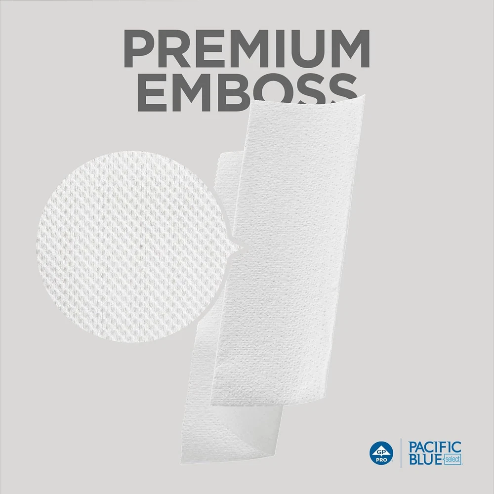 PREMIUM ABSORBENCY AND STRENGTH: Experience softness and absorbency with the Pacific Blue Select multifold 2-ply paper towels. UNIQUE EMBOSS: Designed for comfort, these high-quality towels enhance appearance and hand feel; ideal for frequent hand drying CONVENIENT & VERSATILE: Low-cost option for Class A offices, hotels, restaurants & healthcare facilities with low-to-medium traffic BULK CASE: Each pack contains 125 sheets, and with 16 packs included, you'll ensure your space is well-stocked, making them perfect for use in restrooms, kitchens, and breakrooms; stackable for use in an open tray, counter, or standard folded towel dispensers, providing a hassle-free solution. MULTIFOLD PAPER TOWELS are best suited for facilities with low throughput; for high-capacity environments, consider Pacific Blue Ultra towel dispensing systems for flexibility and affordability Universal Folded Paper Towels are an essential supply for a wide range of professional, away-from-home facilities. They come in white and brown colors, with recycled content options available, and different fold configurations including C-Fold, Z-Fold, M-Fold and S-Fold. They are typically dispensed from ‘universal folded towel’ dispensers that are mounted on the wall and available from towel manufacturers. In smaller business environments and restrooms, folded towels are sometimes ‘set out’ in an open tray or simply stacked on the side of a sink or work space. GP PRO is a division of Georgia-Pacific Consumer Products. We deliver well-designed, durable and easy-to-maintain professional solutions to meet the handwashing and cleaning needs for a range of business applications.