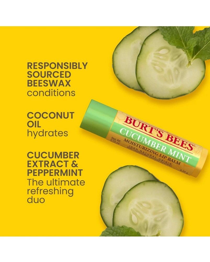 Pack 4 - Burt's Bees Cucumber Mint Moisturizing Lip Balm.