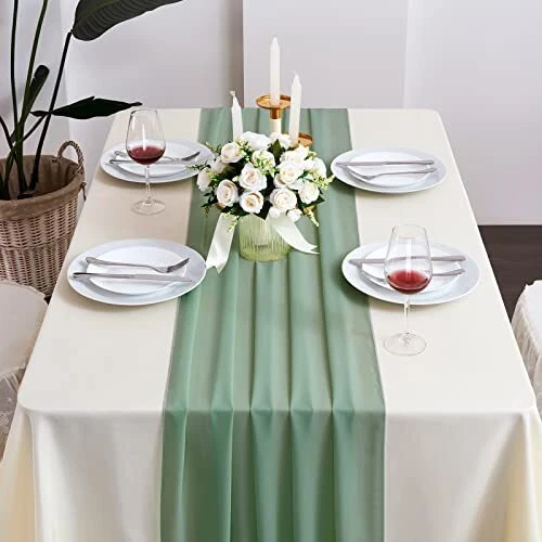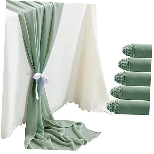Return Policy Fast Delivery Trusted seller 5 Pack Sage Green Chiffon Table Runner 10Ft Wedding Table Runner 29x120 Inches Sheer Romantic Tulle Table Runner for Wedding Decor Bridal Shower Baby Shower Birthday Party Cake Table Decoration Product Description ✨[Package included]: 5 Pcs 29'' W x 120'' L (10 FT) Sage Green chiffon table runners + 10 Pcs White Ribbons.which is large enough to cover rectangles and round tables, can also be spliced together for long tables.Not easy to wrinkle, easy to iron with a regular iron, no fading and no shrinking. ✨[Material]: Made of high quality polyester, the high quality fabric gives this wedding table runner a good drape and has a certain degree of wrinkle resistance.soft to touch, comfortable and durable. The thermal cutting no seaming technique makes this sheer table runner more graceful than traditional fabrics. Fine workmanship with delicate stitching and finished edge. ✨[Elegant Design]: This rectangular romantic vintage chiffon table runners has a rustic-elegant look, with good drape effect, easy to create natural draping and beautiful folds. Tie them off with a beautiful ribbon or clip to add beautiful soft folds to your cascading look. Soft table linen with gorgeous finished edges drapes gracefully across your banquet table, also a good match with flowers, candlesticks green plants and other decorations. ✨[Wide uses]: These beautiful chiffon table linens are perfect for just about any event including weddings, bridal showers, baby showers, graduation decorations,holiday dinner parties, Valentine’s Day,Thanksgiving, Christmas,dessert tables, and life events. The pretty table runner helps to achieve a look of elegance to event's decor,that makes your life chic. ✨[Easy to care]: The chiffon table runner is best for hand wash or machine wash in the gentle cycle with a wash bag; do not soak for too long or use hot water, no bleach, lay flat or hang to dry.If you're not satisfied with this chiffon table runner.for any reason, please contact us , we'll vailable to provide you with services and help. Shipping Returns Payment Shipping Shipping is FREE to all addresses other than APO/PO boxes in the lower 48 states. All our stock ships from US-based warehouses. Shipped via USPS or UPS (depending on location and package weight) Unless stated otherwise, all orders will ship within 24-72 hours of your payment being processed. Check our feedback to see the great reviews of FAST shipping we offer. Returns Seller does not accept returns Payment We currently accept payment via eBay managed payments only. Once payment is cleared, we will dispatch your shipment within 1-3 business days. Please refer to the "Shipping" tab for more information regarding shipping speed to your destination.