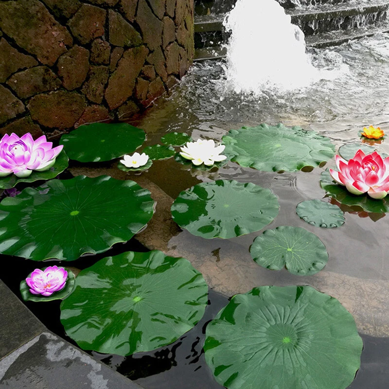 Features: 1.PREMIUM QUALITY - Our lifelike artificial leaves are made of good quality foam, with excellent color fastness performance. The color will stay vivid and won't fade in the water. These are also a great fit for our artificial water lilies to decorate your ponds. 2.REALISTIC LOOKING - With lifelike foamy material and different sizes, the lotus leaves are beautiful and natural looking. They will add a perfect and unique vibe to your pond! 3.WIDELY USED - Easily floating on the water, the lily pads are great decorations for water features, fountain ponds and aquarium fish tanks. Also, they are perfect for the decor of home and special events like weddings or parties. It is a great idea to wow all your guests! Specification: 1,100% new and high quality 2,material:foam 3,color:green 4,size:The diameters are: 10 cm, 17 cm, 28 cm Package include:9 pcs / 1 set Note: There is 2-3% difference according to manual measurement. Please check the measurement chart carefully before you buy the item. Please note that slight color difference should be acceptable due to the light and screen. Preview: