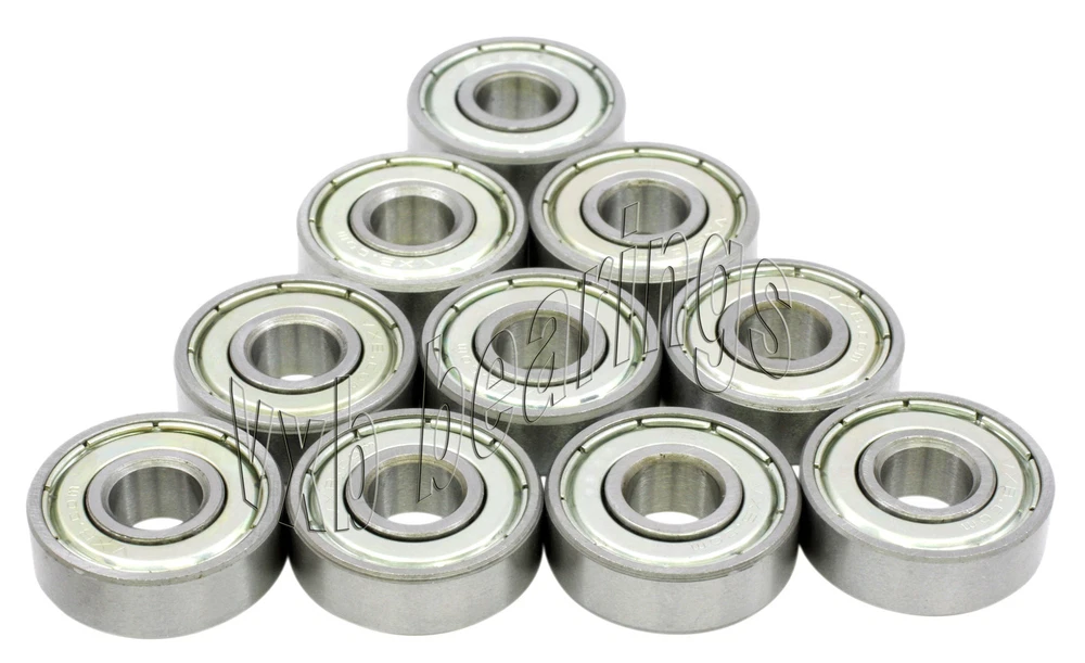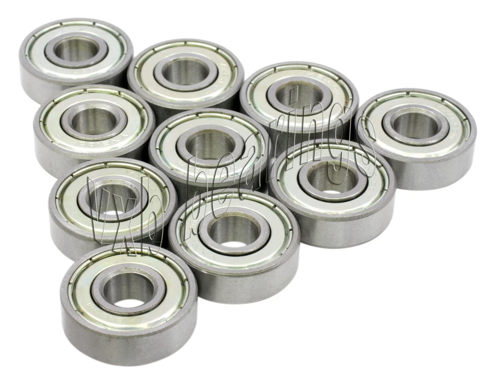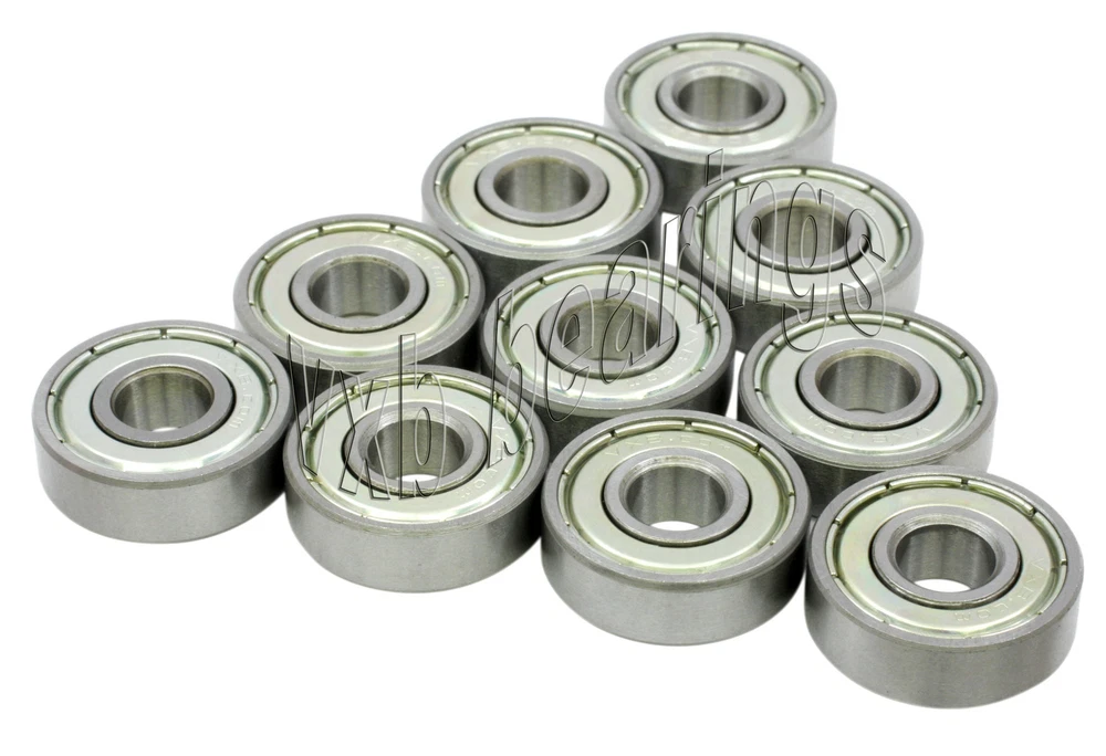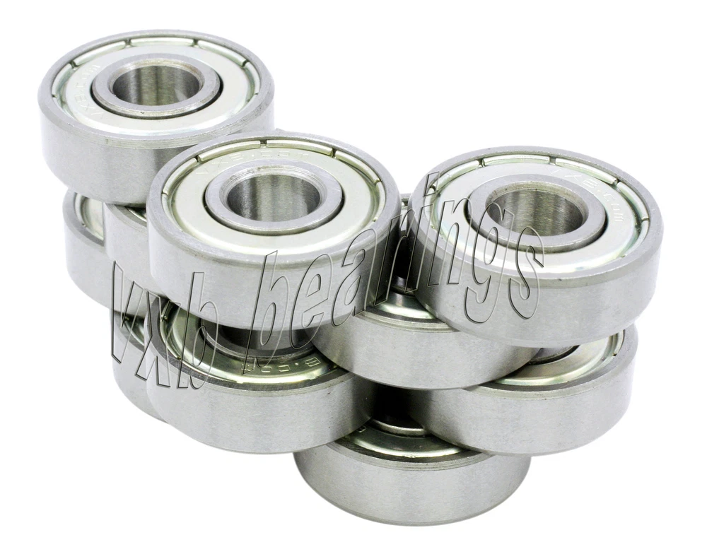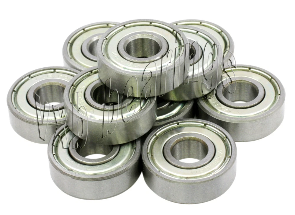 You are getting 10 Small Size Ball Bearings Click on Picture to view Ball Bearings 608 ZZ Brand New Never used Never Opened Dimensions: ID=8mm OD=22mm B=7mm Quantity 10 pieces Brand New Never used Never Opened 10 Bearings Packed in a retail box .. see picture Quality Precision Lot of 10 small size ball bearings, item number is 608 ZZ, retails for $30.00, VXB Brand, many other small sizes are available, please inquire if you have any different sizes, we have more than 100 sizes in stock, bearings are packaged in a retail box, bearings are made of Carbon Steel and can rotate up to 34,000 rpm, each bearing has 2 metal shields to protect the bearing from dust or any possible contamination, these are self lubricated bearings (bearings are already greased). Item: 608 ZZ Type: Deep groove ball bearings Closures: 2 Metal Shields Retail Price: $30.00 Quantity: Lot of 10 Bearings Bearing Size: 8mm x 22mm x 7mm Pack#238