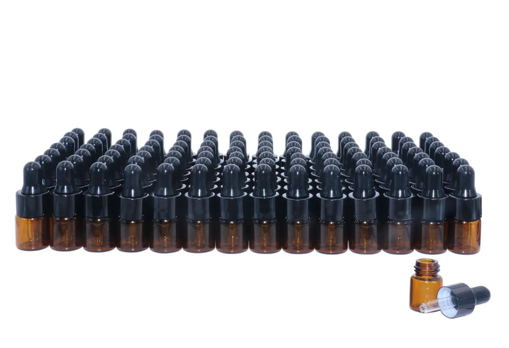 Pack of 100,2ml (5/8 dram) Amber Glass Dropper Bottle,Empty Sample Vial Glass...