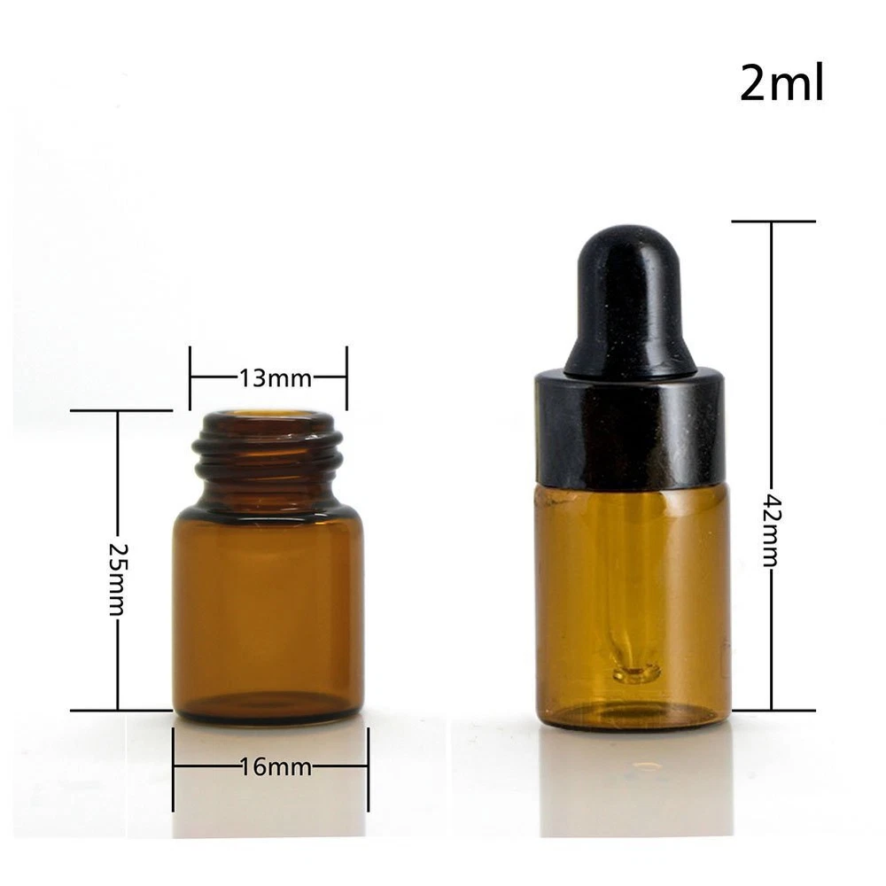 Description: Type: Essential Oil Dropper Bottles Bottle Color: Amber Material: Glass; Black Aluminum Cap Capacity: 2ml Item Size: 1.6 * 4.2cm / 0.63 * 1.65in(1 Bottle) Item Weight: 5.0g (1 Bottle) Package Included: 100 Pcs 2ml Amber Glass Bottle, Complete Bottle (Pure Glass Dropper+Black Aluminum Cap+Black Rubber) come with 2ml Plastic Transfer Pipette 3 pieces&Plastic Mini Funnels 1 pieces. Material: Glass;Size :diameter:16mm/0.63 inch; height:42mm/1.65inch,Capacity:2ml. 2ml dark brown glass dropper bottle ,100 Pcs Complete Bottle(Amber Glass Bottles, Pure Glass Dropper, Black Aluminum Caps),come with 2ml Plastic Transfer Pipette 3 pieces&Plastic Mini Funnels 1pieces. Amber glass bottles offer a very professional display,Protects Against Harmful UV Rays. Perfect for travel, Small volume, easy to carry and conveniently fits in your purse. Great for solvents,electronic cigarettes,eye drops,saline,perfumes and cologne etc.