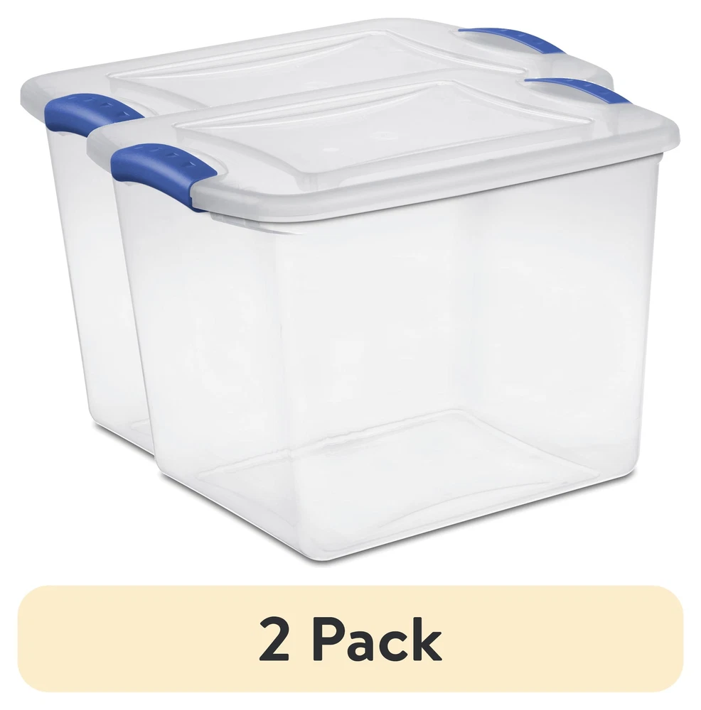 (Pack of 2) 27 Quart Clear Plastic Storage Bin with Clear Lid