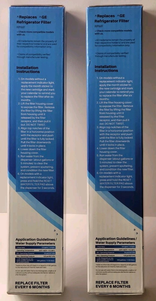 Ensure your drinking water is clean and fresh with the GOLDEN ICEPURE RWF3600A Refrigerator Water Filter. Designed as a replacement for the GE RPWF filter, this pack includes two filters to keep your household well-hydrated. The advanced carbon/charcoal filtration method effectively removes chlorine taste and odor, ensuring every glass of water is pure and delicious. Crafted from durable plastic, the filters are compatible with a range of GE refrigerator models