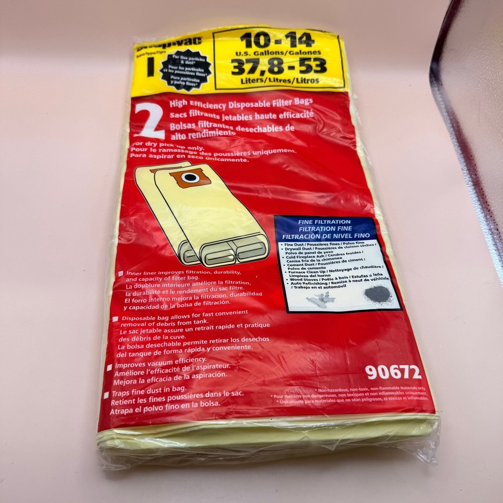 Pack of 2 Shop-Vac 9067233 Disposable Vacuum Bags Fits 10-14 Gallon Tanks, Heavy Duty Paper