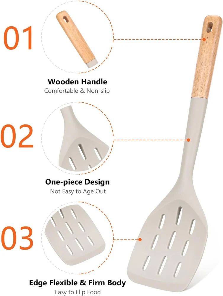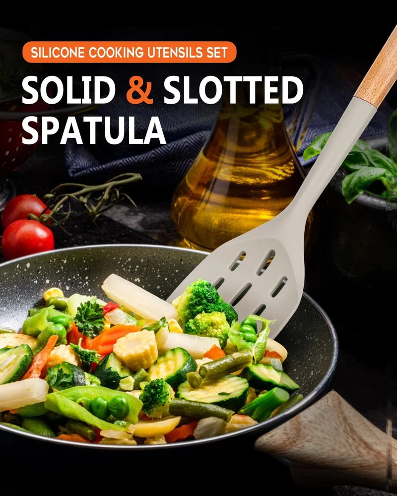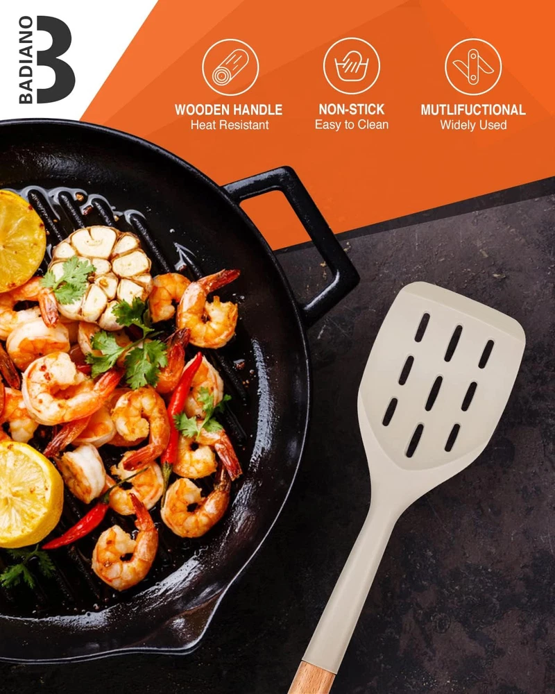 Pack of 2 Silicone Spatula, Non Stick Cooking Utensil Set Uniserval, Khaki Product Details Material: Silicone Color: Khaki Brand: Badiano Size: Uniserval Product Dimensions: 13.1"L x 3.3"W Item Weight: 0.39 Pounds Is Dishwasher Safe: No Handle Material: Wood Recommended Uses For Product: Mixing, Stirring, Flipping, Lifting, Sauteing, Serving Manufacturer: Badiano Item Weight: 6.2 ounces Country of Origin: China Item model number: BD1-062-KHAKI Essential Cooking Companion: The Badiano silicone spatula set is a must-have for bakers and home chefs alike, simplifying cooking tasks and enhancing culinary joy in every kitchen adventure Unmatched Durability: Silicone utensil set Crafted from premium, heat-resistant 446℉ (230℃) silicone, these spatulas won’t scratch nonstick cookware or easily break, ensuring reliability for years. Invest in quality that lasts Ergonomic & User Friendly: Enjoy cooking without discomfort! Each kitchen turner features an ergonomic wooden handle for a secure grip, and the seamless design makes cleanup a breeze Stylish Color Options: Elevate your kitchen with vibrant colors that match any decor. Our rubber spatulas not only perform beautifully but also add a splash of personality to your cooking space Perfect Choice for Food Lovers: A thoughtful choice for any occasion! The Badiano silicone spatula set is ideal for cooking enthusiasts, combining style and quality for a delightful surprise