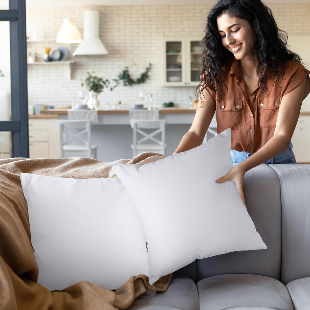 Throw Pillow Pack - Pack of 2 decorative throw pillows for your couches or bedroom; they are neither too big nor too small and they give off a homely vibe Packaging - Pillows are compressed in vacuum packaging because of shipping purpose, they might appear as one large pillow. Dimensions - Each pillow insert measures 22 by 22 inches Material Composition – 115 GSM Brushed Fabric and siliconized fiber filling will never make them look hollow Soft and Durable - The pillows are designed to give a delicate feel while retaining long term durability Care Instructions - It is recommended to spot clean the pillow or hand wash the fabric for easy care and maintenance.