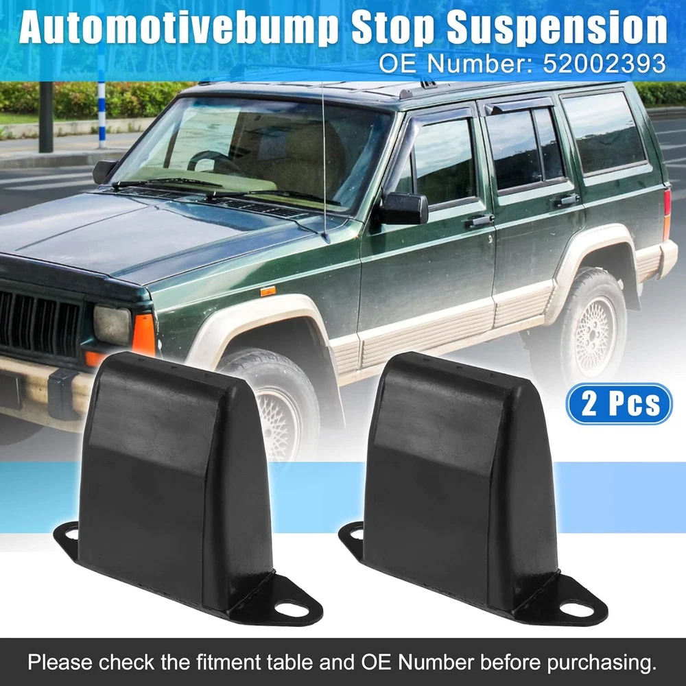 About this item [Part Number] 52002393 [Fitment] for Jeep M-J Comanche 1987-1992; for Jeep XJ Cherokee 1984-2001. [Pros] Sturdy and durable, easy to install. Manufactured according to the original dimensions, fully adapted. [Function] The main purpose of a bump stop is to serve as a cushion when the suspension finally broken. Prevent metal from hitting metal or, in some cases, prevent the frame from traveling too far. [Package] 2x Rear Suspension Bump Stop. Please confirm the fitment table and OE Number before purchasing. This is a non-OEM product, accessory only. OE Number: 52002393 Fitment: for Jeep M-J Comanche 1987-1992 2.1 L for Jeep M-J Comanche 1987-1992 2.5 L for Jeep M-J Comanche 1987 2.8L for Jeep M-J Comanche 1987-1992 4.0L for Jeep XJ Cherokee 1985-1994 2.1L for Jeep XJ Cherokee 1984-2000 2.5 L for Jeep XJ Cherokee 1994-2001 2.5 L for Jeep XJ Cherokee 1984-1986 2.8L for Jeep XJ Cherokee 1987-2001 4.0L Specifications: Type: Rear Suspension Bump Stop Material: Rubber Condition: Brand New Fitment Type: Direct Replacement Package Include: 2x Rear Suspension Bump Stop
