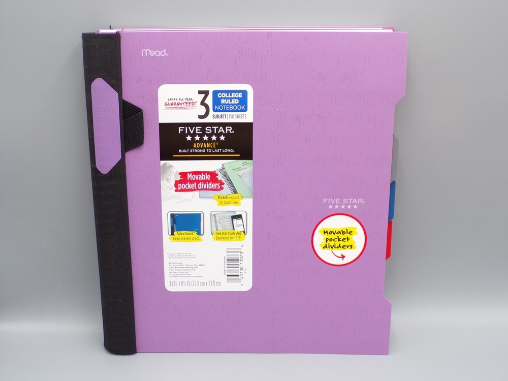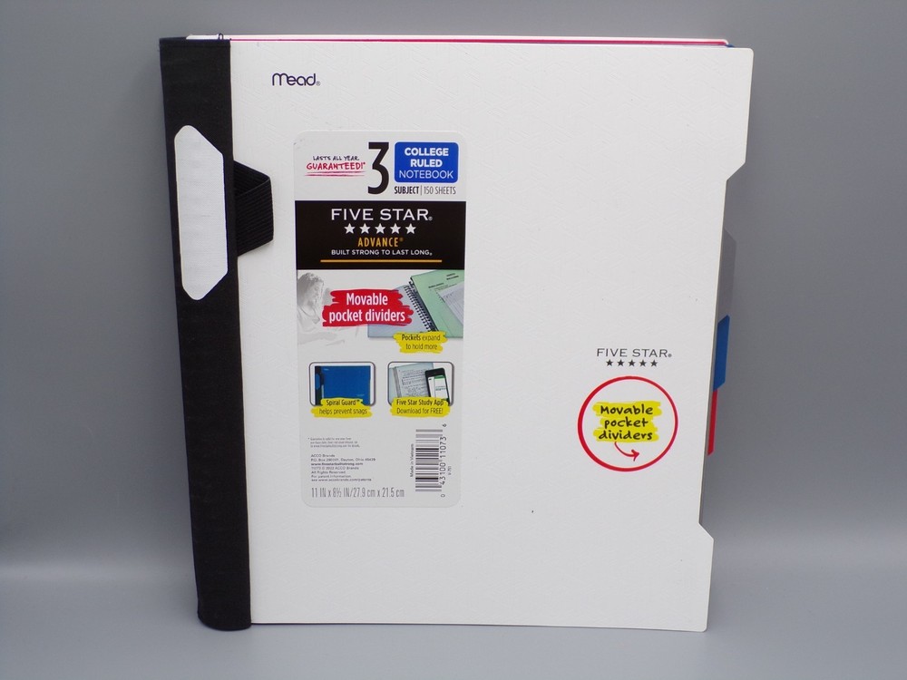Pack of 5 Mead Five Star Advance Notebook 3 Subject College Ruled 11 in x 8.5