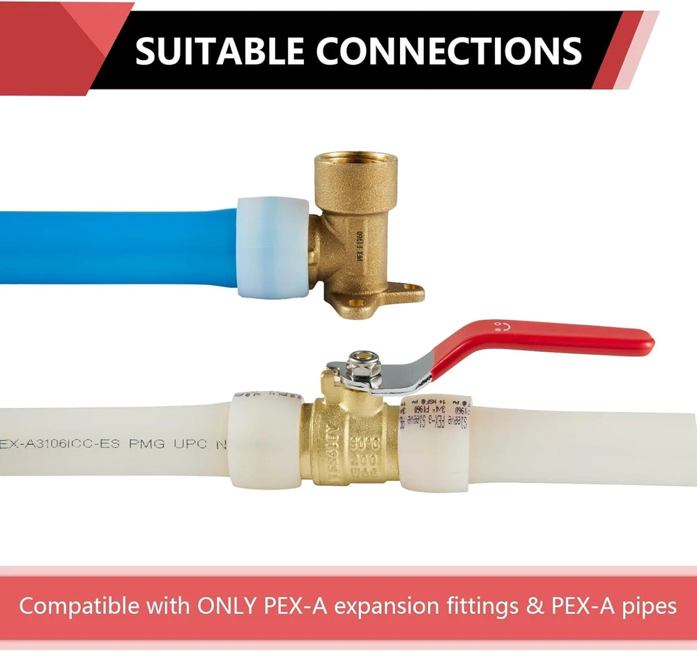 For Use with 1/2" Pex-a Tubing This Efield Product is Compatible with all Types of Brands of Pex A Pipe/Tubing Meet the Standard F1960 Certified to ANSI/NSF-61 and ASSE 1061 Product Standard Pack of 50. Only for Pex A Pipe/Tubing and Fitting Connection. Product Description Efield: Full Range Pex Plumbing Supplier Efield USA Inc, specializing in pipes, brass fittings, ball valves and manifolds etc. With 25 years of experience in production engineering, our products have been recognized by global customers and exported to many countries in the world. Efield: Full Range Pex Plumbing Supplier PEX crimp fittings These fittings are used together with crimp or clamp (cinch) method for making a connection. Push fittings A unique fitting system which is compatible not only with all types of PEX, but also with copper (K, L, M) and CPVC pipes. PEX expansion fittings Compatible only with PEX-A tubing ,can be expanded and are installed using an expander tool and expander sleeves. Copper press fittings Copper press fittings are the perfect on-the-job partner. They help you save time and effort by streamlining your work. Efield: Full Range Pex Plumbing Supplier Brass ball valves & Stop valves Shut-off, balancing, regulating, purging and other type valves for plumbing from industry leading manufacturers. Find your PEX connection of choice with this selection of PEX Valves. With a variety of options in price and involvement, you are sure to find one that is perfect for your job. Out let box Efield outlet boxes house both supply and drainage lines for various plumbing appliances, including washing machines, ice makers, toilets, and dishwashers. Efield: Full Range Pex Plumbing Supplier Pex A Expansion tubing Efield Expansion PEX is cross-linked polyethylene tubing designed for use within potable water piping systems Pex B Crimp tubing Efield PEX pipes, with their excellent corrosion resistance and flexibility toughness, can help you save time by making any piping installation simpler.