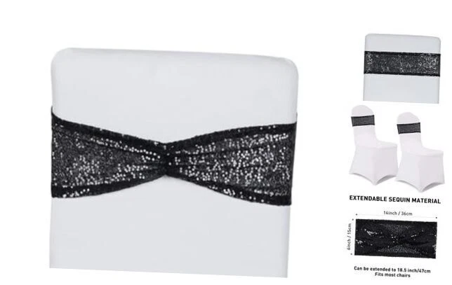 Menu 1. We require immediate payment. 2. We currently accept payment via eBay managed payments only. 3. Once payment is cleared, we will dispatch your shipment within 1-3 business days. Please refer to the "Shipping" tab for more information regarding shipping speed to your destination. Pack of 50 Sequin Chair Sashes Black Chair Bows Bands for Party Wedding Banquets Decor Product description SIZE: 14 inches length with 6 inches width. Can fit almost banquet chairs and folding chair covers, suitable for chair back width: 13 to 14.5 inches. FABRIC: The chair sashes are made of sparkling 3mm round sequin fabric and sturdy, and the sequins are not easy to fall off. The backside is designed in the shape of a cute bow ,which adds a touch of sparkle and glamour to the overall look of the chairs. LOCKED EDGE: The edges of the chair sashes bands are hemmed and stitched with color-matched thread. The stitching is dense and neat ,shiny and eye-catching look. Easy to set up, just stretch over the chair cover, to create a stylish and luxurious appearance. WIDELY USED: Decorative sequin chair sashes add a touch of elegance and sparkle to any event, perfect for Christmas,Thanksgiving, Halloween, festival decor,parties, weddings, banquets, birthday,ceremonies and more! KINDLY NOTE:Due to different monitors, the color of the chair sash itself may vary slightly from the picture. If you have any questions, please feel free to contact us, we are happy to serve you. PLEASE MESSAGE US IF YOU HAVE ANY OTHER QUESTIONS, AND MANY THANKS FOR READING ALL OF THIS. Copyright ©#. All Rights Reserved.