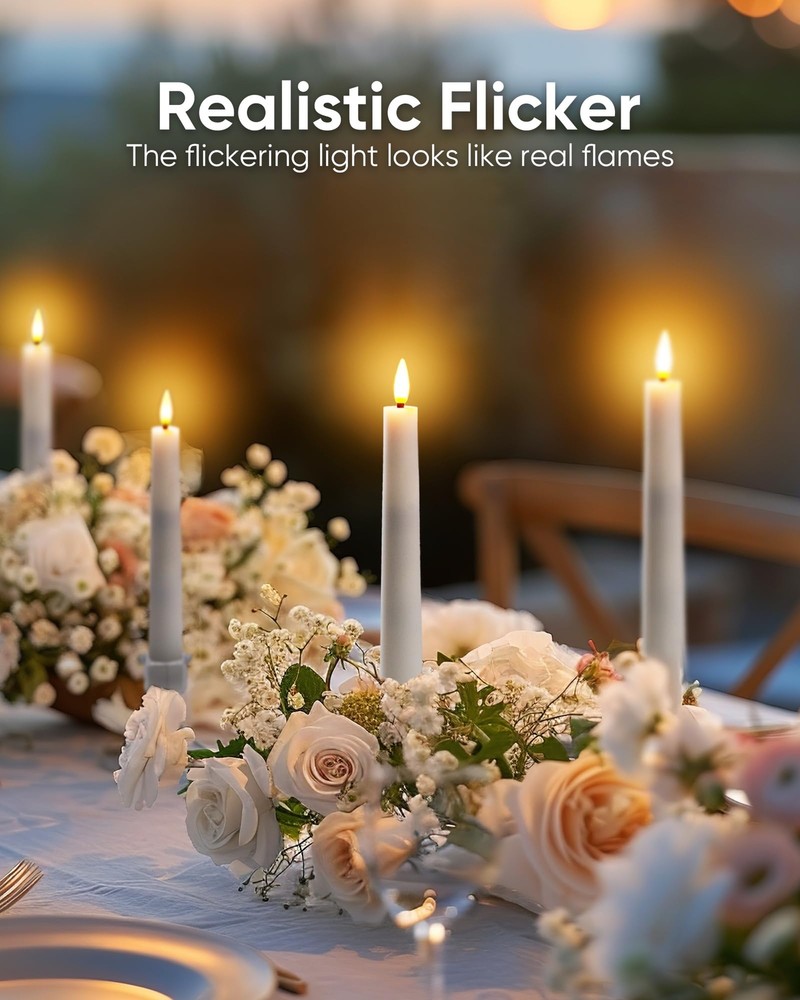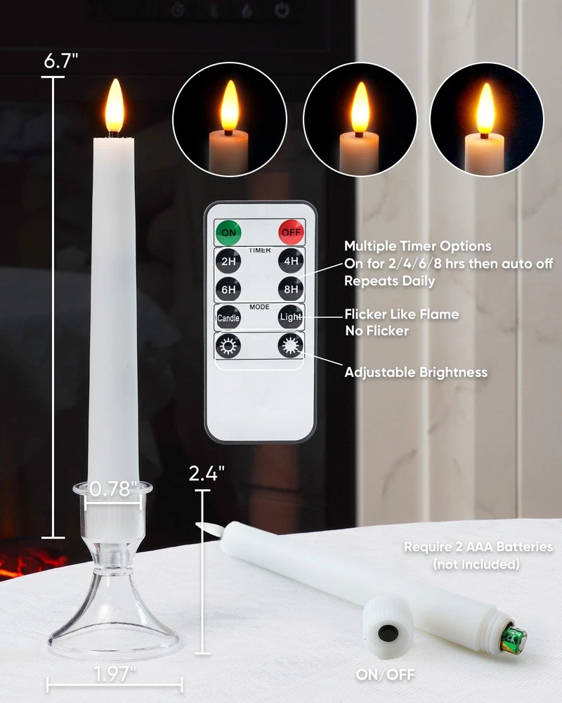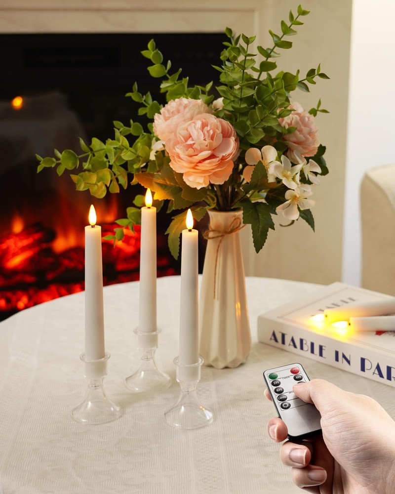 1. These flameless taper candles are perfect for adding cozy ambiance without the mess! The warm flickering glow looks so realistic, and the remote timer makes them super convenient. Love how safe and clean they are—ideal for windows, fireplaces, or any decor. The pack of 9 gives great value, and the included holders are a nice touch. Highly recommend for hassle-free elegance!