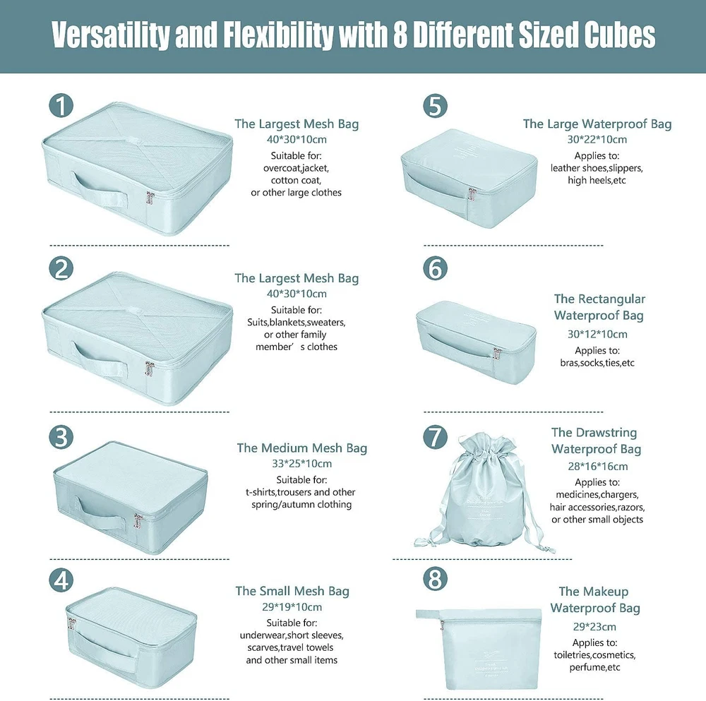 Store New Arrivals Add to Favorite View Feedback Contact Packing Cubes 8 Sets Travel Luggage Organizers Include Waterproof Shoe Storage Bag Convenient Packing Pouches for Traveller (Blue Grey) Description Closure Type Drawstring, Zipper Number of Items 8 Color Blue grey Special Feature Durable,Waterproof Material Polyester Load Capacity 10 Pounds Number of Sets 8 Item Weight 1.1 pounds Shape Rectangular Recommended Uses For Product Clothing, Footwear, Toilet, Cosmetics Department unisex-adult (luggage only) Is Discontinued By Manufacturer No Product Dimensions 15.75"L x 11.81"W x 3.94"H Size One_Size Value for money-The packing cubes is tailor-made for those who pay attention to quality of product,Superb quality and exquisite workmanship can show from packaging,zipper,texture and other details.Once you receive our travel Luggage Organizers ,touch our product,you will be proud of your choice.BETLLEMORY packing cubes worth its price Thoughtful and Reasonable Design-Cross-shared fixed belt keep your clothes as clean as possible.Visual mesh design allows you to easily find the clothes you want. Double zipper design allows your right and left hand to open quickly. The handle design allows you to carry a bag around at any time Durable and colorful material-The packing cubes use latest Hign-denisity polyester,make packing cubes lighter and more durable.At the same time,we offer 7 different color ,the same product,different set of colours,choose any one you like,make your trip more pleasant More sophisticated suits-When we travel we need carry all kinds of travel supplies,The latest 8 sets design allows all your travel supplies have their own independent storage space.Such as, we have set special shoe bags, cosmetic bags, underwear bags, electronic product bags and so on Quality -.We have prepared exquisite package,The packing cubes will be Perfect ideas friends and families.We promise to provide you with the best shopping experience. Let you feel happy about the convenience brought by this product. If there is any unsatisfactory, by any time Product Description ABOUT US We offer the best prices around on high quality products. Our E-store includes media such as books, movies, music and games while offering electronics, toys, sporting apparel, clothing, tools, general home, garden items and more. SHIPPING We are always working hard to ensure your package arrives as soon as possible. Please understand that some factors like weather, high postal traffic, and the performance of shipping companies are outside of our control. We offer free shipping to the lower 48 states and ship within 2 business days of payment, usually sooner. We do not accept P.O. Boxes. Please provide a physical address. For shipping outside of the continental USA, we only use eBay's Global Shipping Program.The item is shipped to KY and then sent to the rest of the world. International customers are responsible for all duties and taxes. Continue to check out in order to calculate costs for shipping the item to your country. Messages regarding eBay's Global Shipping Program MUST be directed at eBay EXCLUSIVELY. RETURNS We offer a 30-Day Return Policy on items which you are not completely satisfied with. You have the option for a full-refund or an exchange of the item. No returns are available on items shipped outside of the USA. PAYMENT We accept PayPal. CONTACT US This page content is yet to come Please ad us to your favorite seller and visit again later Thank You CUSTOMER SATISFACTION We try our very best to make sure every customer is completely satisfied. If there's a problem, message us! We're happy to help. WE ACCEPT Copyright © 2021 AutoDS. | All Rights Reserved