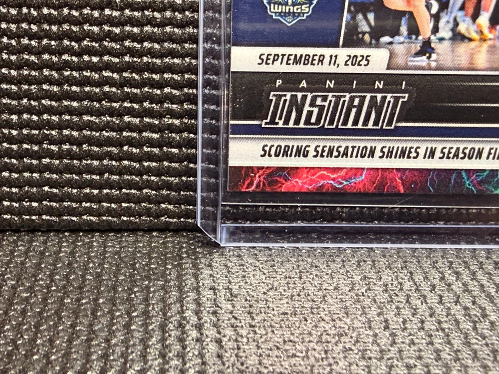 This rookie card is a rare and highly sought-after 2025 Panini Instant WNBA trading card featuring rookie player Paige Bueckers from the Dallas Wings (and UConn Huskies ). This card is a limited edition Lightning parallel variety with a print run of only 5 , making it one of the most valuable and desirable cards for basketball collectors. Manufactured by Panini in the United States, this card is part of the 2025 set and comes factory sealed , adding to its collectible appeal. With its serial number (4 of 5) and short print features (/5) , this card captures a historic moment in the career of Bueckers, who is poised to make a big impact in the Women's National Basketball Association. Stored in a smoke-free environment. This price includes fast and secure free shipping.
