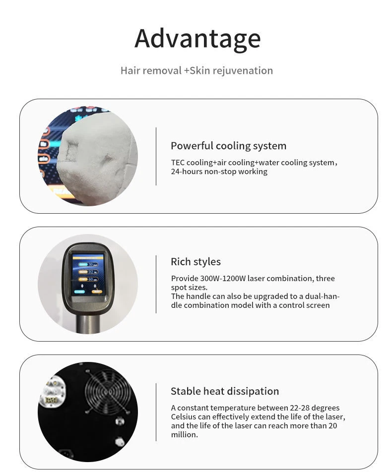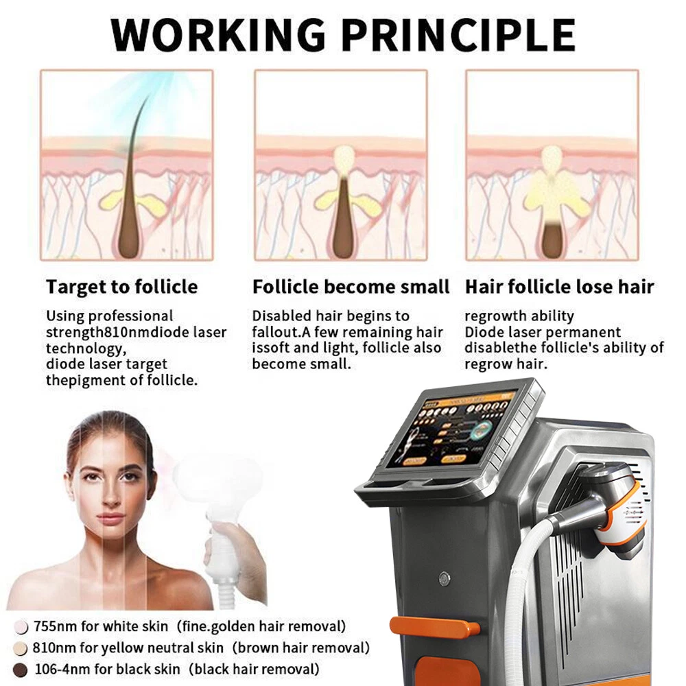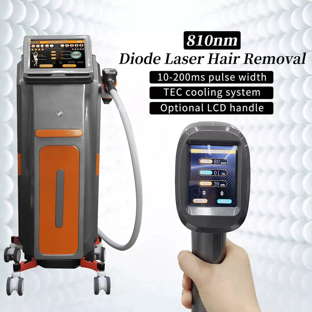 Note: Please carefully check the link options before placing an order. The machine has two different handle options: the handle with a screen and the handle without a screen ! The Principle: (Semiconductor) Diode laser hair removal is modern hair removal technology, which can destroy hair follicle structure and permanently remove hair without scalding the skin Skin Types :According to Fitzpatrick classification, the skin color was divided into 6 types: white skin in Europe and America were I, II; Southeast Asian yellow skin type III, IV; African brown black skin type V, VI. Type I II skin has less melanin in the basal layer. It is safe to use 810 nm diode laser or 755 nm laser. The content of melanin in the basal layer of V-VI type brown and black skin is very high and 1064 nm laser is more suitable. Type III-IV yellow skin race, skin basal layer melanin content is medium, 810 nm Diode laser isthe safest. Diode Laser 810nm: With Diode Laser;Half Treatment Time Perform more treatment sessions in less time, allowing you to quickly treat larger areas,while offering your patients the fastest and more effective hair removal feelings. Diode Laser 1064nm New experience for specialized darker skin hair removal 1064nm laser, 1064nm wavelength hair removal treatment will be safer especially for dark skin, skin rejuvenation. performance well, and strong power cooling function, treatment comfortable and safe. Diode Laser 755nm The most popular 755nm diode laser which replace the solid state alexandrite diode laser and have a more comfortable treatment. It is effective for melanin to absorb 755nm diode laser. This characteristic is good for villi hair removal when people use 755nm diode laser treatment handle. And the treatment time is getting shorter. Advantage: 1. 810nm diode laser for hair removal and skin tightening/rejuvenation uses the most advanced technology , suitable for all skin types . 2. High energy:excellent treatment result can be expected at the first treatment and suitable to all types of hair. 3. Long laser width: Effective for the hair follicles produce heat accumulation, Permanent hair removal. 4.Safety:Almost no skin scattering, no harm to the skin and sweat glands, no scar, no any side-effect. 5.Quick: Squared big spot size could prompt the treatment speed, treatment speed and efficiency. Reduce treatment time for original 1/5 . 6.Self-checking and auto-protection mechanism to ensure the stability. Product Name: 810nm Laser Hair Removal Machine Voltage: 110V/220V Screen: 10.4 inches LCD digital touch screen Working Frequency: 1~10hz(optional 0~20hz) Energy Density: 1~100J/cm2 Spot Size: 15*15mm Pulse Width: 5ms~600ms Cooling System: TEC+Sapphire refrigeration TEC Cooling: 12V 6A Package includes : 1 x Machine + Accessory