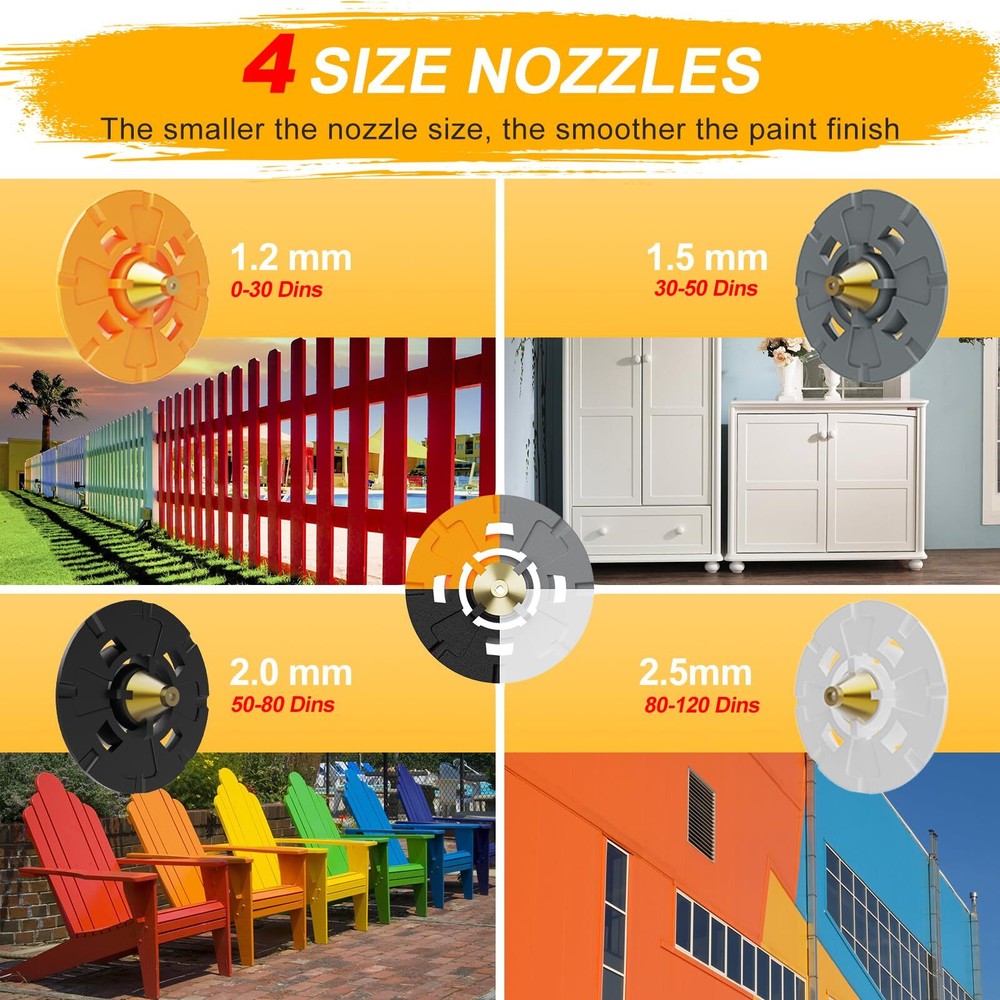 Paint Sprayer, 700W HVLP High Power Electric Spray Paint Gun with 40 Fl Oz Easy Painting & Easy Life - Everyone will meet a special paint sprayer, and maybe it will be. LIFOVE portable electric paint sprayer is designed with the HVLP (Making More Efficient Spraying) electric spray gun. 700W high-speed motor and powerful turbofan make painting faster and more even, making it easier for you whether you are painting furniture, fences, cabinets, or walls. Tips: Before painting, please make sure the suction tube is inserted tightly to avoid ineffective spraying Adjustable Spray Width & Flow Control - No more worry about overspray, no more worry about wasted paint. LIFOVE portable paint sprayer comes with an upgraded spray width knob, which can control the spray area well and greatly improve the utilization rate of paint to suit various spraying projects. You can also increase/decrease the spray flow of paint by adjusting the flow control knob, allowing you to complete your favorite projects as you like 4 Nozzles & 3 Spray Patterns - LIFOVE 700W paint sprayer equipped with 4 size nozzles (1.2mm, 1.5mm, 2mm, 2.5mm) for most painting projects, such as furniture, pickup, walls, doors, garden tables, and cabinets, etc. Smaller nozzles are suitable for fine spraying, while larger nozzles are suitable for large-area spraying. It can be adjusted to 3 different spray patterns: horizontal, vertical, and circular, making it suitable for a wide range of application scenarios. Max Viscosity: 120 Din-s Dust Blowing Function & Easy to Clean - Before spraying, you can use the paint sprayer to blow away the dust/debris on the surface to obtain a better surface spraying effect. After painting, disassemble the motor part and soak and clean other paint sprayer accessories. Tips: It is very important to clean the paint sprayer thoroughly after use, it comes with a cleaning brush and a needle to clean paint left in the suction tube and nozzle part What You Will Get - Exquisite paint sprayer gift box, which includes 1*paint sprayer, 4*nozzles (2.0mm nozzle attached to the machine), 1*nozzle cleaning needle, 1*cleaning brush, 1*Viscosity Cup, 1*Paint Filter (Bonus paint paper), 1*User Manual. The electric paint sprayer can be easily assembled with no tools, even if you are a beginner, you can easily get started after reading the manual. Tips: 12-Month Warranti is available Paint Sprayer, 700W HVLP High Power Electric Spray Paint Gun with Adjustable Spray Width Knob, 40 Fl Oz Container, 4 Nozzles & 3 Patterns, Easy to Clean, for Furniture, House, Fence, Walls, Etc. Shipping We offer FREE shipping on all orders! We ship within Three business days of payment, usually sooner. We use a selection of shipping services such as UPS, FedEx, USPS etc. We only ship to the lower 48 states, no APO/FPO addresses or PO Boxes allowed. Local pickups and combined shipping options are not provided at this time. Return You can return a product for up to 30 days from the date you purchased it. Any product you return must be in the same condition you received it and in the original packaging. Please keep the receipt. Payment We accept payment by any of the following methods: PayPal Please pay as soon as possible after winning an auction, as that will allow us to post your item to you sooner! Feedback Customer satisfaction is very important to us. If you have any problem with your order, please contact us and we will do our best to make you satisfied. Contact Us If you have any queries, please contact us via ebay. We usually respond within 24 hours on weekdays. Please visit our eBay store to check out other items for sale! Thank you for shopping at our store.
