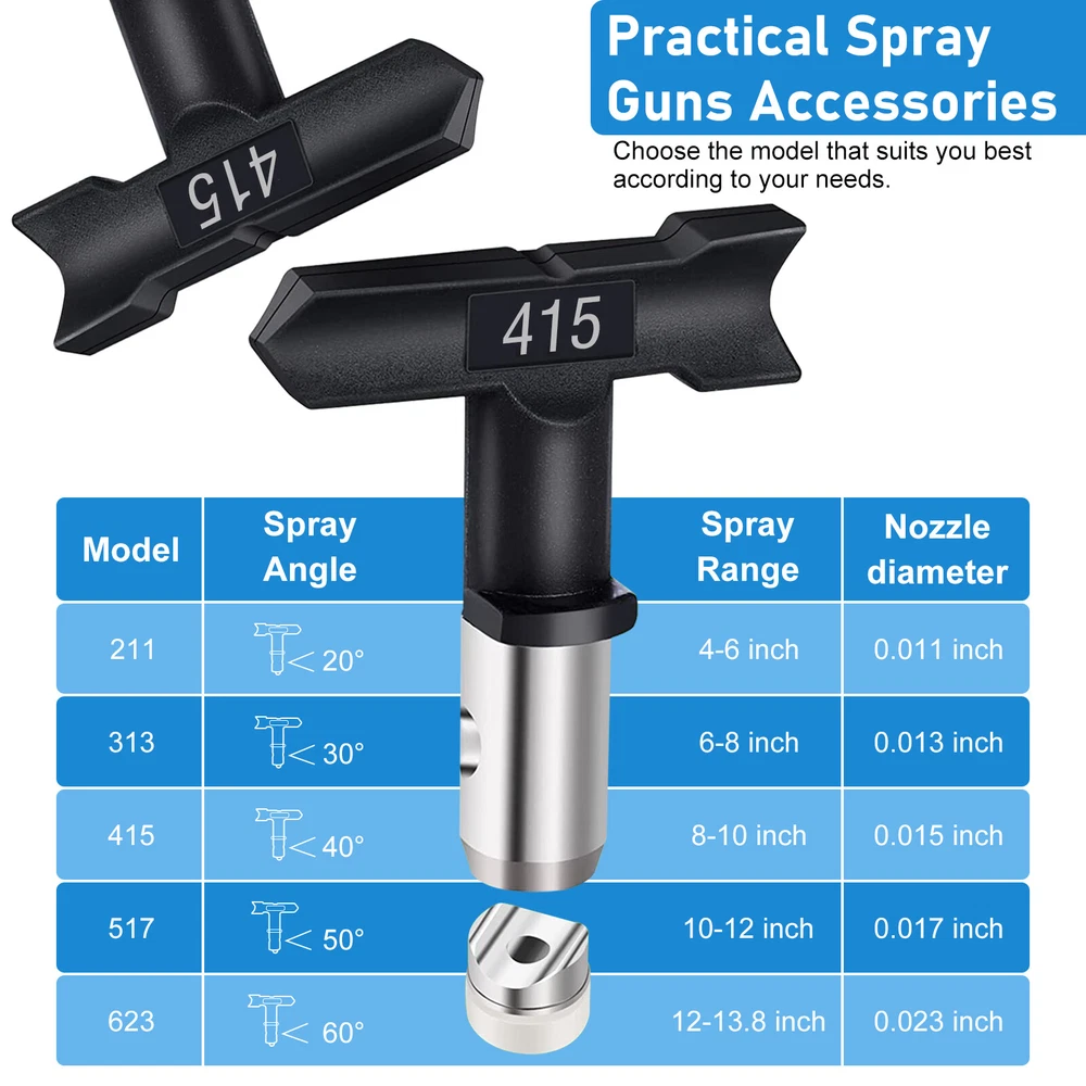 Product Description Features: 【 Wide compatibility】Available in 109 211 213 313 315 415 417 517 623, airless sprayer nozzles compatible with most airless sprayers; The spray range will vary depending on the size of the aperture and is perfectly suited to your daily use and replacement needs. 【 Quality material】Double-sided airless nozzle made of tungsten steel, strong and wear-resistant, easy to clean, long service life. 【 Easy installation】No installation tools, just a few steps to install the airless nozzle on the sprayer; First use the nozzle to seal the nozzle in the protection seat, and then insert the nozzle into the protection seat to rotate to complete the installation, saving time and effort for your project. 【 Feature HEA Technology】Nozzles reduce overspraying by up to 55% while providing softer spraying, improved control, and a more consistent finish. Save more paint. Suitable for paint, furniture, fence, home decoration, industrial fine drawing decoration, etc. 【 Practical design 】Airless sprayer nozzle has reverse airless cleaning switch nozzle design, spray can be quickly cleaned in reversible position, prevent nozzle clogging, practical and effective for your work. Specifications: Material: Stainless steel + tungsten steel Color: Black Spray Tip Size: 109 211 213 313 315 415 517 623 Package included: 1x Nozzle powered by