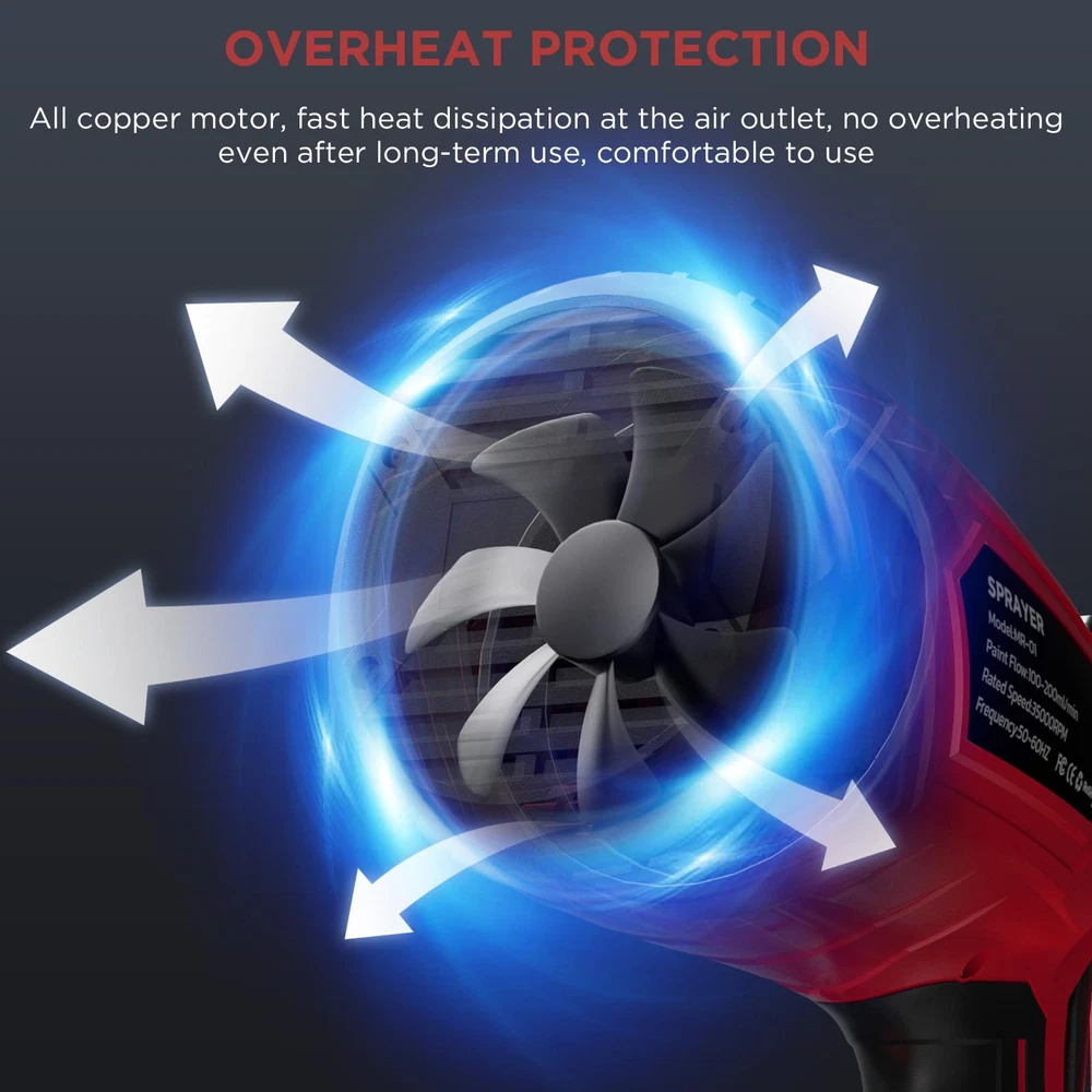 100% Copper Motor:Our spray paint sprayer Different from most aluminum clad copper motors, our motor is made of 100% copper material, with a speed of 35000 per minute, efficient spraying, uniform thermal conductivity, and during use, the machine will not overheat, it won't suddenly stop working halfway making it comfortable to use Built in 10 Pieces Batteries:Our cordless paint sprayer built in 10 Pieces battery,fully charged can be used continuously for half an hour,Overvoltage protection, automatic power-off,wireless operation, convenient and flexible Copper Nozzles:paint guns for house painting upgrade for battery paint sprayers, iteratively upgraded the plastic nozzles on the market to brass nozzles, effectively solving the problem of being blocked and corrosion damage Adapt to Various Projects : Our paint gun sprayer includes 3 spray modes + 5 nozzle options, switching between 3 different spray modes to meet your specific painting needs. 5 nozzle sizes: 1.0mm, 1.5mm, 1.8mm, 2.5mm and 3.0mm, can easily and efficiently complete various painting projects in these options After Sales Service: We provide you with video usage guidance and a 12-month product warranty period for this battery paint sprayer If you encounter any problems during use this spray paint , please contact us Within 24 hours, we will definitely give you a satisfactory reply