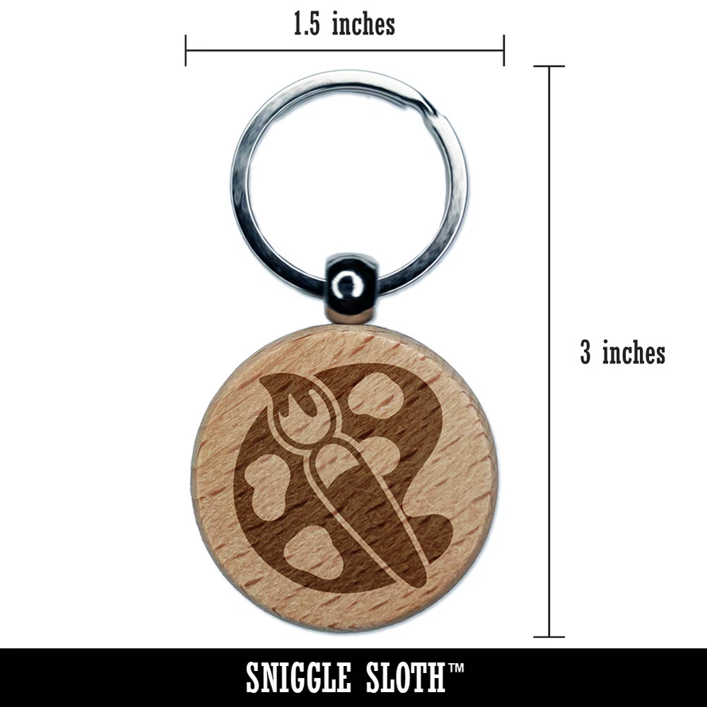 Paintbrush Artist Paint Palette Art Engraved Wood Round Keychain Tag Charm