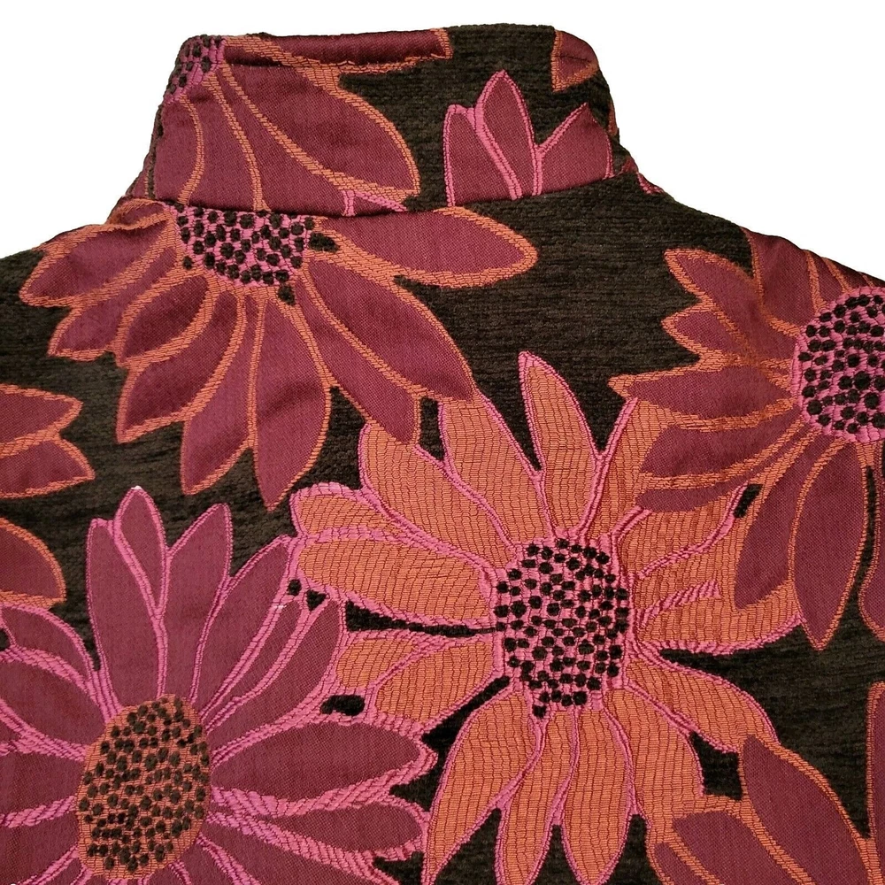 Size XL. Length 22". Pit to pit 23". Arm length from shoulder 30". In good preowned condition. Painted Pony Women's Tapestry Jacket is a must-have for any bohemian-inspired wardrobe. The multicolor brown, red, and orange floral pattern and quilted accents make it a unique piece that will make any outfit stand out. The jacket is made from a rayon blend knit fabric and features a collared neckline and shoulder pads for a comfortable fit. It is perfect for any occasion, whether for travel, casual wear, or work. The jacket is short and has long sleeves, making it suitable for any season. The lining is made from polyester.