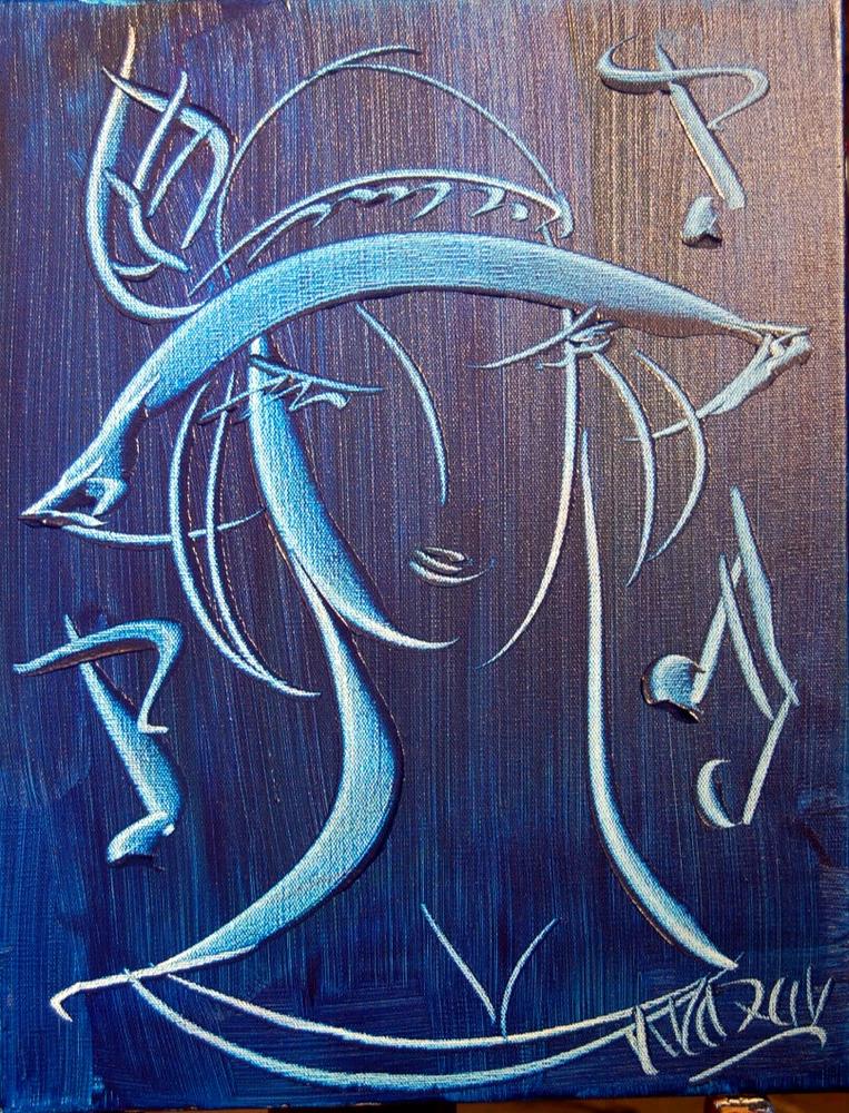 Painting BLUE GIRL abstract SIGNED BY KAZAV Original IMPRESSIONIST NR