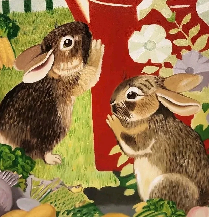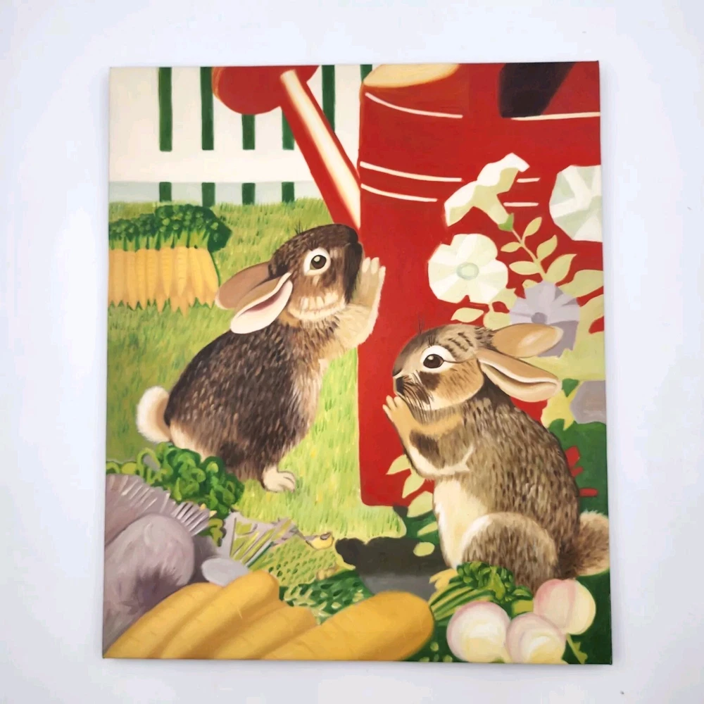 Painting Print Wall Hanging Art On Canvas Rabbits Bunnies Easter Spring 20"x24". Condition is Used. Shipped with Economy Shipping.