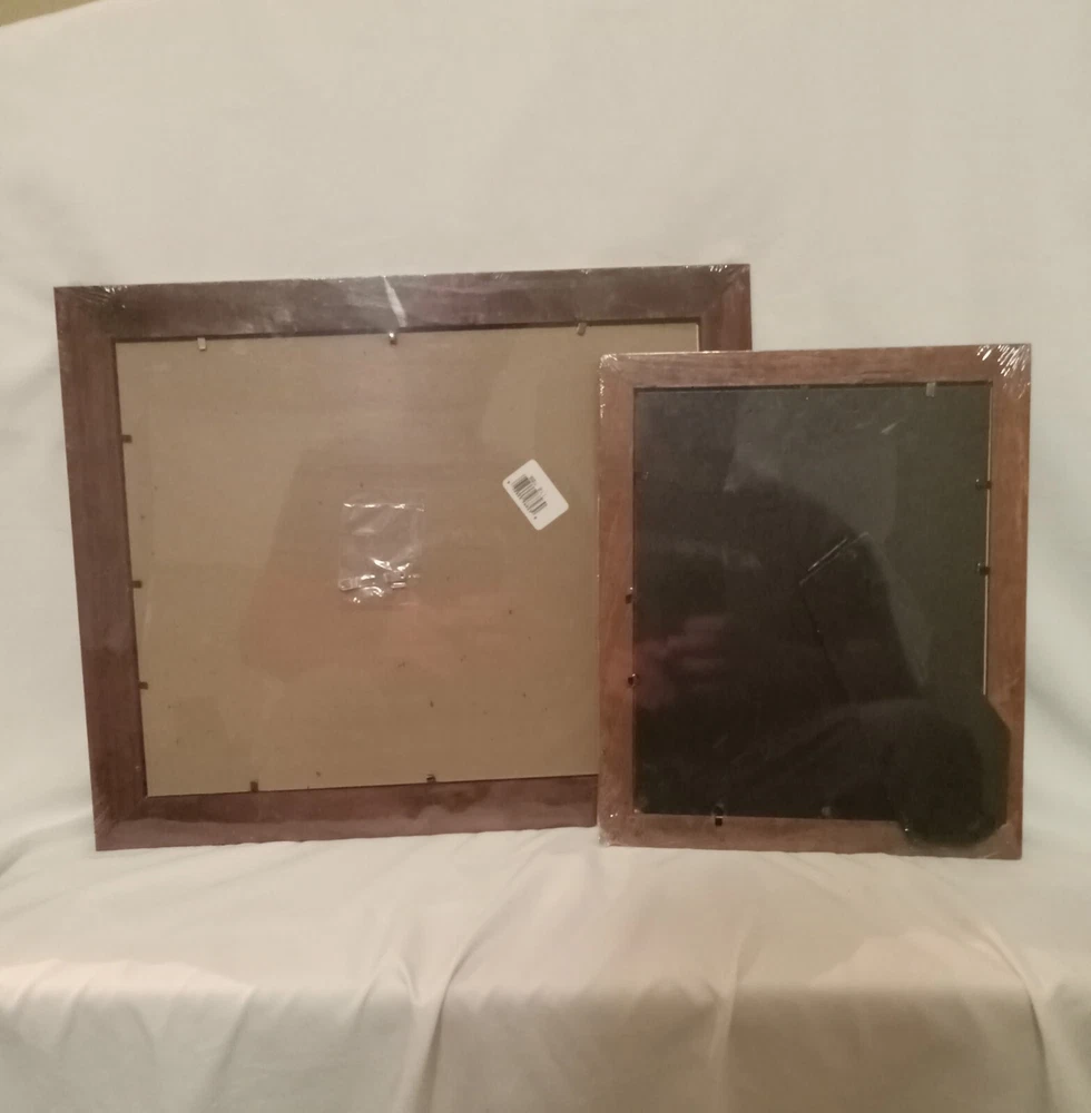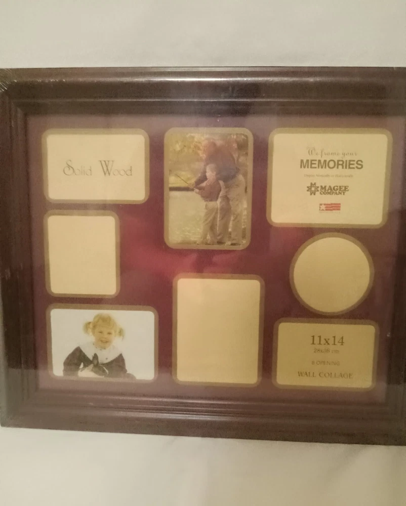 Display your cherished memories with this lot of 2 modern various sizes photo frames. The frames feature a solid wooden frame and a plain design with a glass front, perfect for all occasions and suitable for portrait orientation. 1 frame can hold from one to 8 photos the other is for single photo and is made with high-quality materials, including a sturdy wooden edging and a spacious interior. These frames are perfect for adults and can be easily mounted on a surface or placed on a shelf. The rectangular shape and size of them make them a versatile addition to any home decor. Remember to personalize your photos before displaying them in these frames. 1 11x14" family album. holds 8 photos 1 8x10 portrait frame. 1 photo